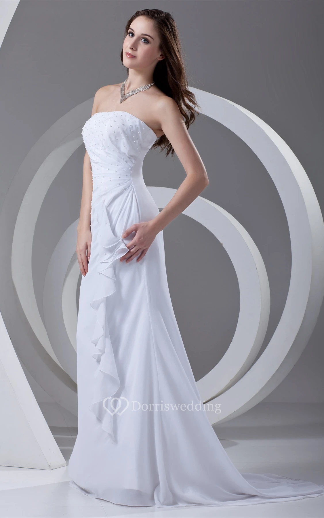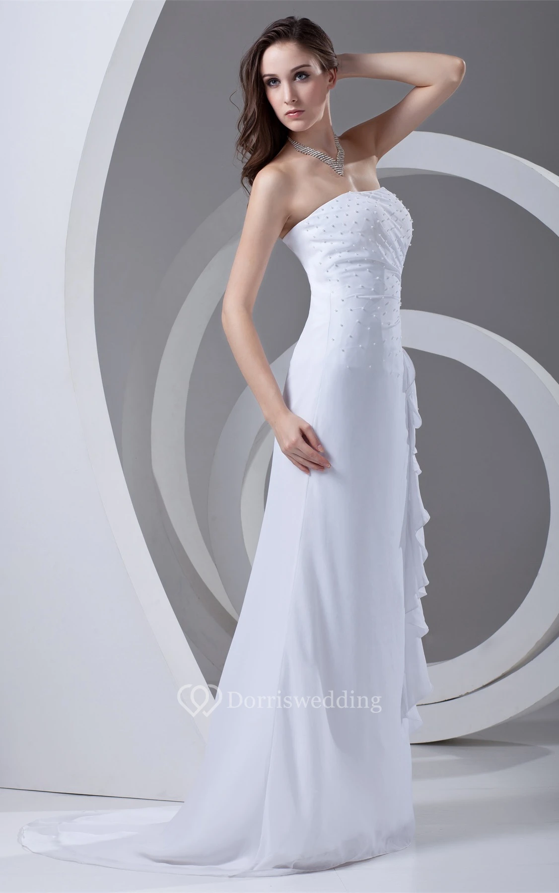 Strapless Maxi Sheath Draping and Dress With Beading