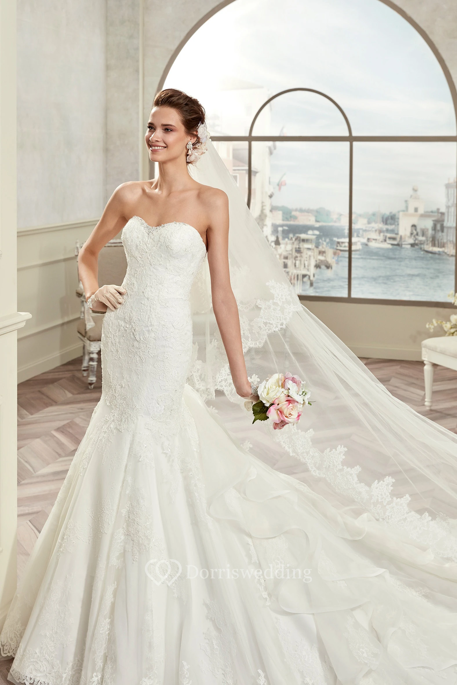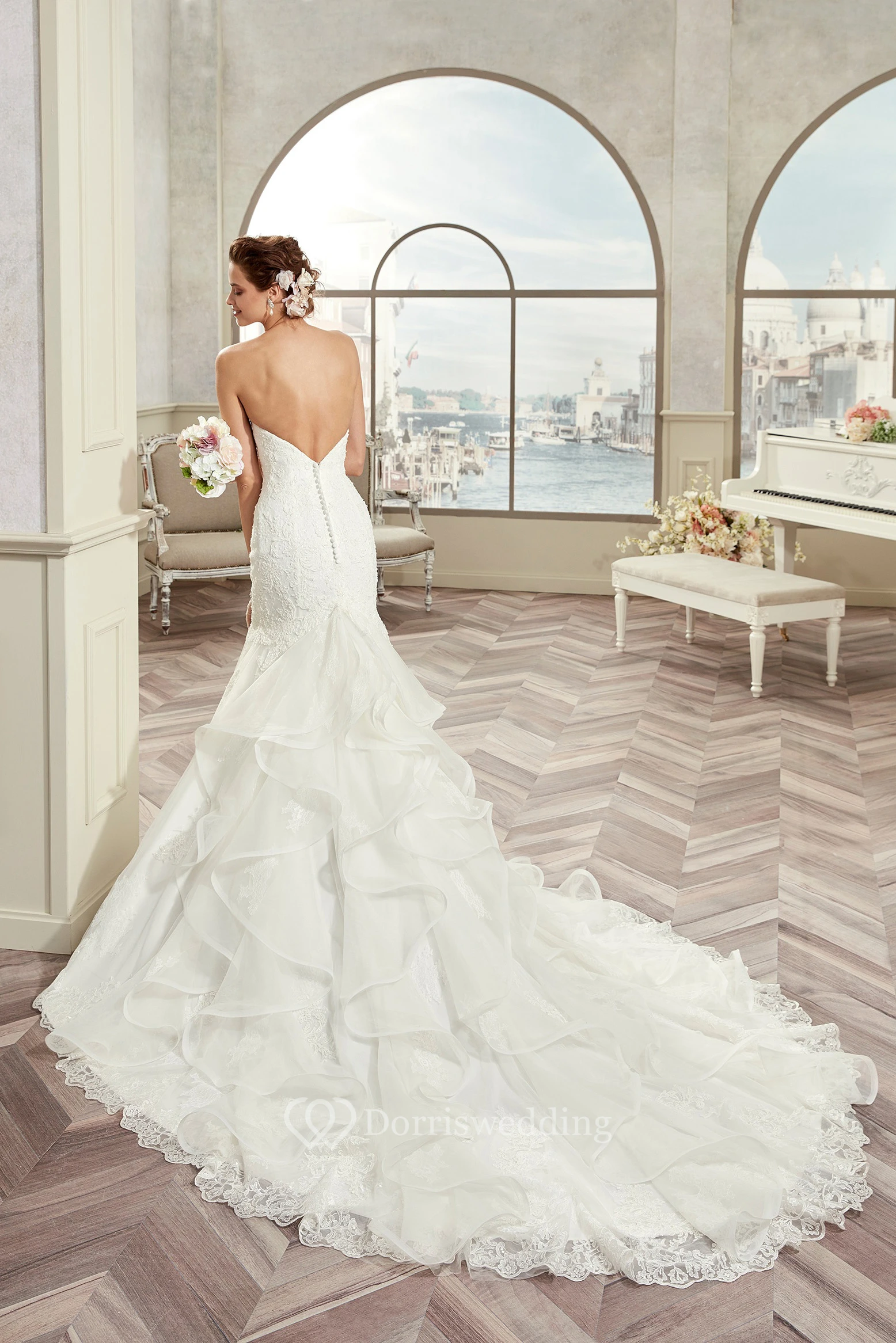 Strapless Mermaid Bridal Gown With Ruching Train And Open Back