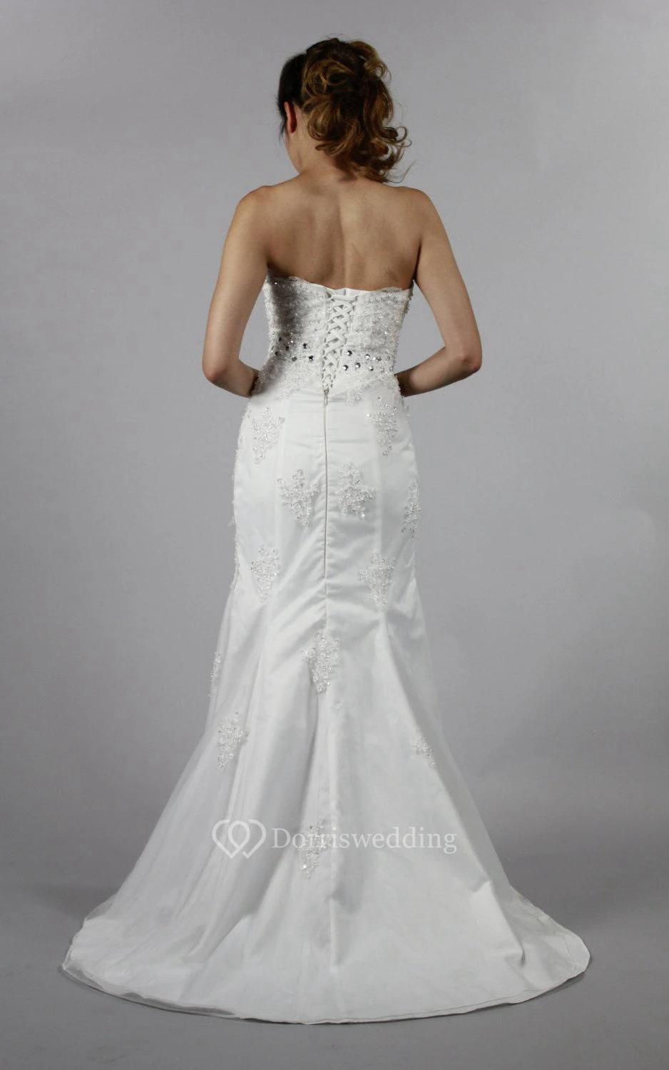Strapless Mermaid Lace Dress With Rhinestones and Lace-Up Back