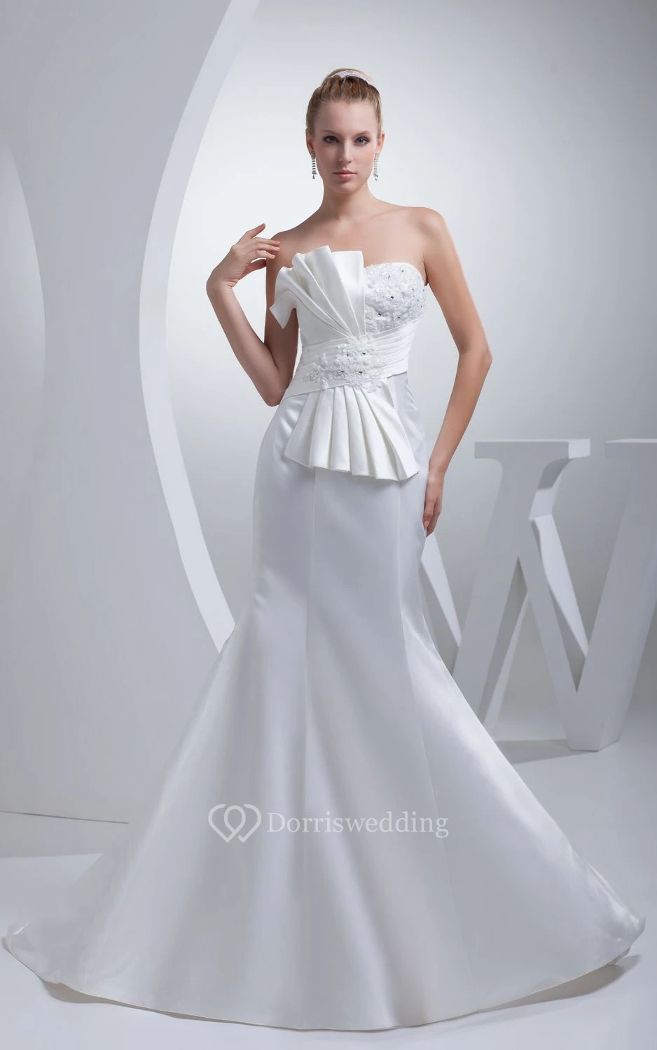 Strapless Mermaid Ruched Dress With Beading and Bow