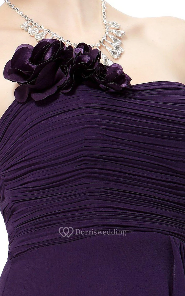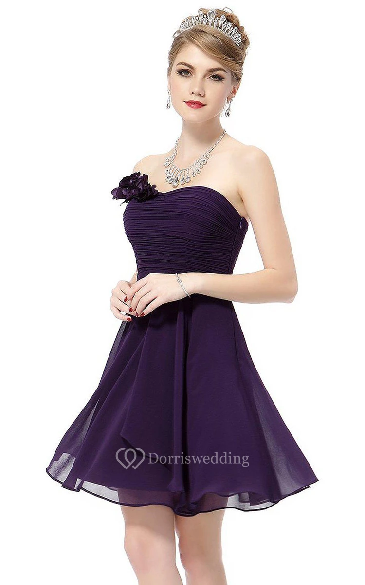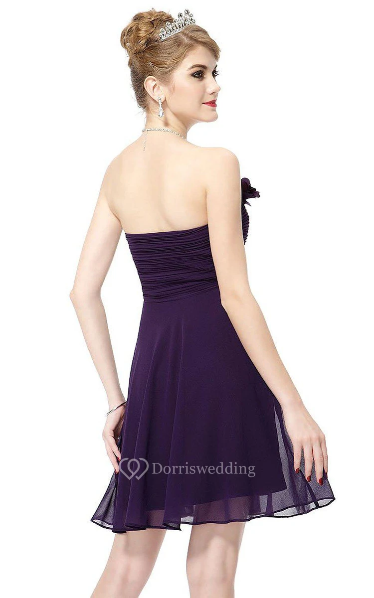 Strapless Mini Chiffon Dress With Flower Detail