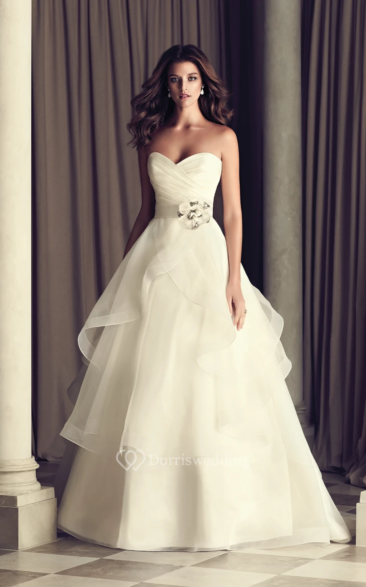 Strapless Organza Gown With Bandage And Petals