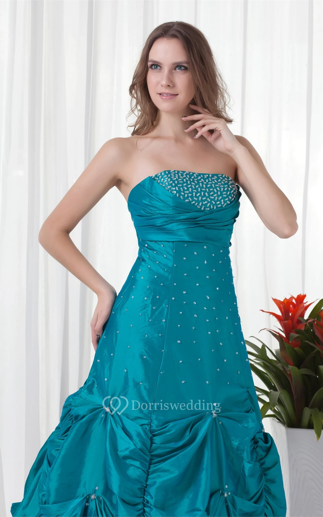 Strapless Pick-Up Beaded Ruching and Gown With Buckle