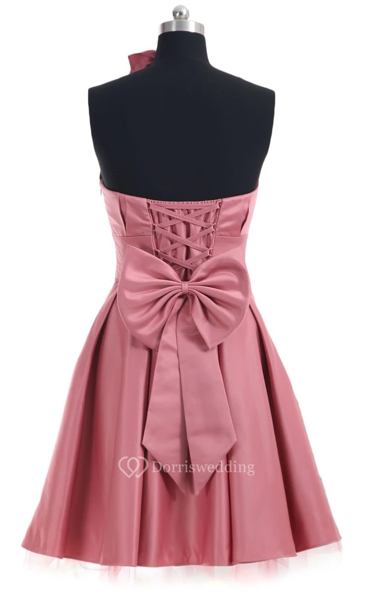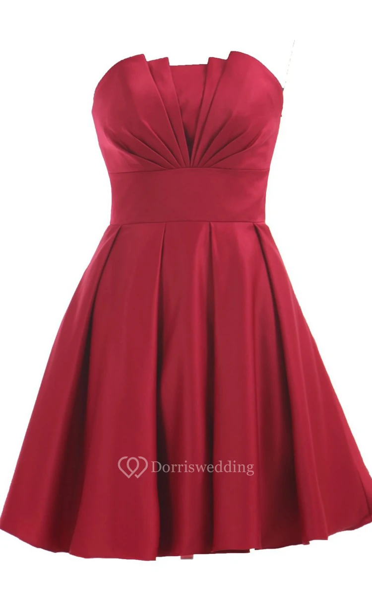 Strapless Pleated A-line Dress With Lace-up Back