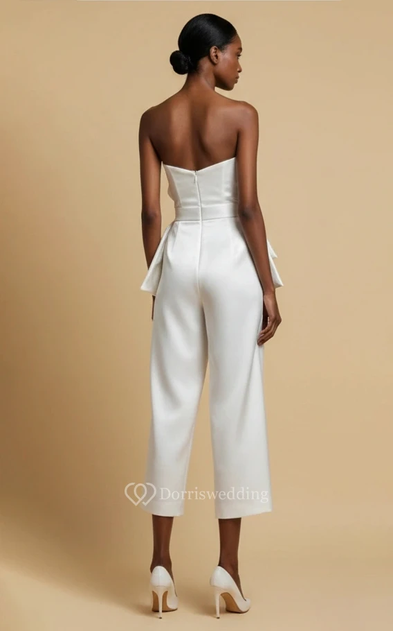 Strapless Pleated Bow Wide Leg Culotte Wedding Jumpsuit