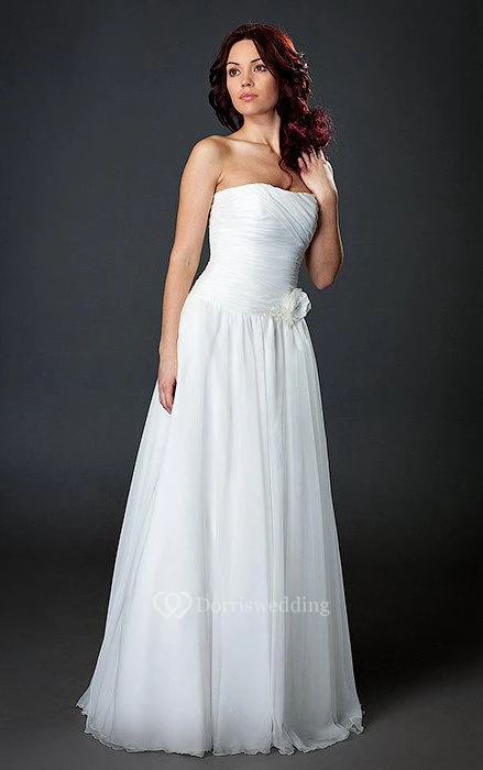 Strapless Pleated Chiffon A-Line Dress With Flower