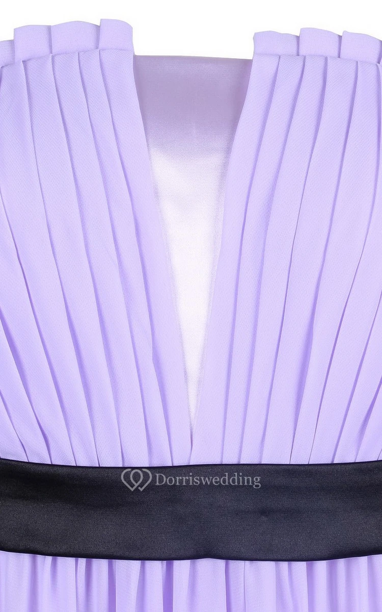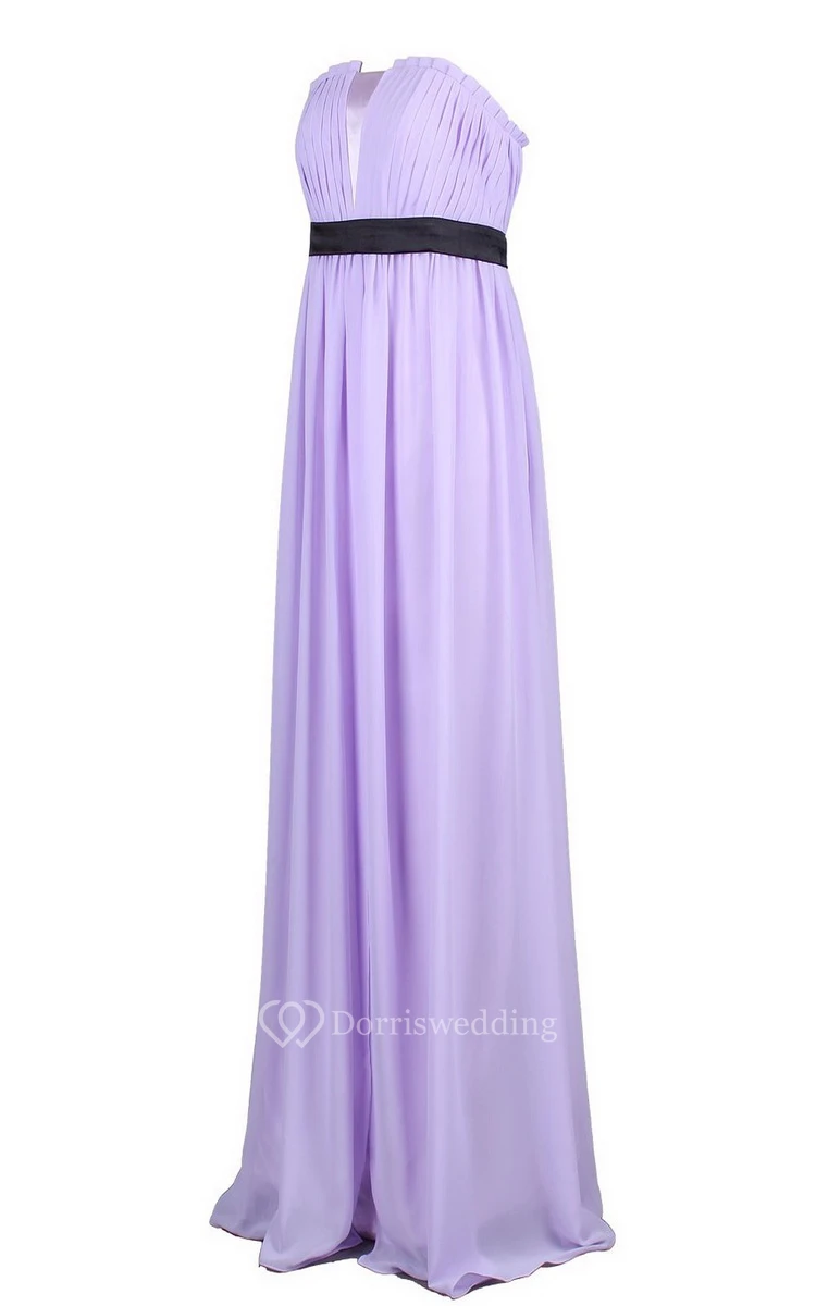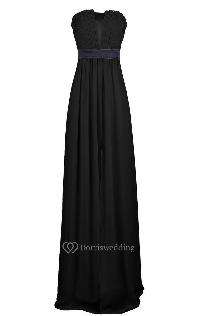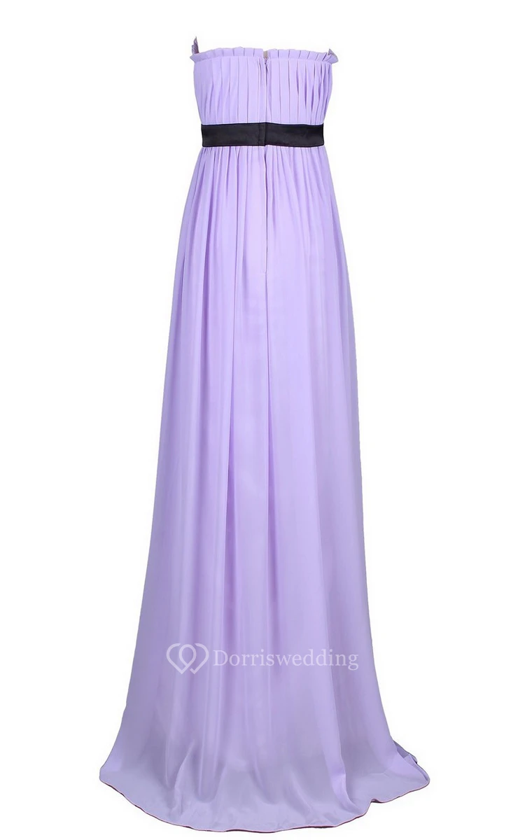 Strapless Pleated Long Wedding Dress With Chiffon Belt