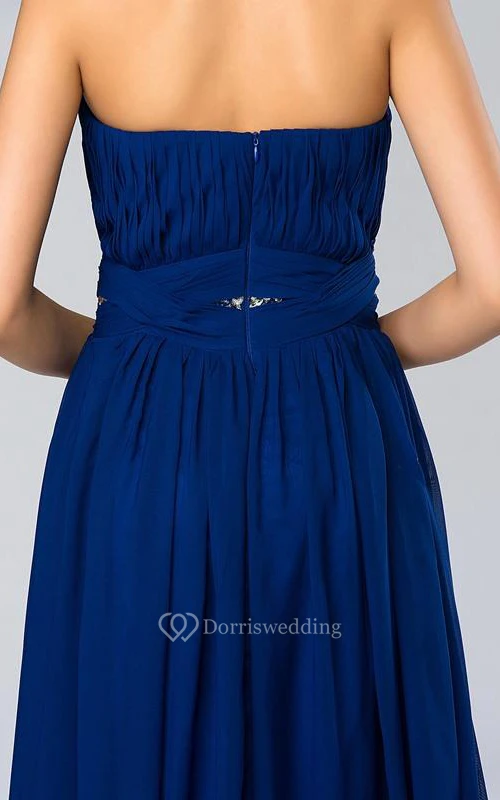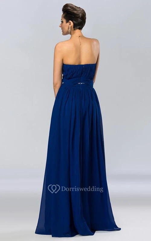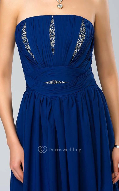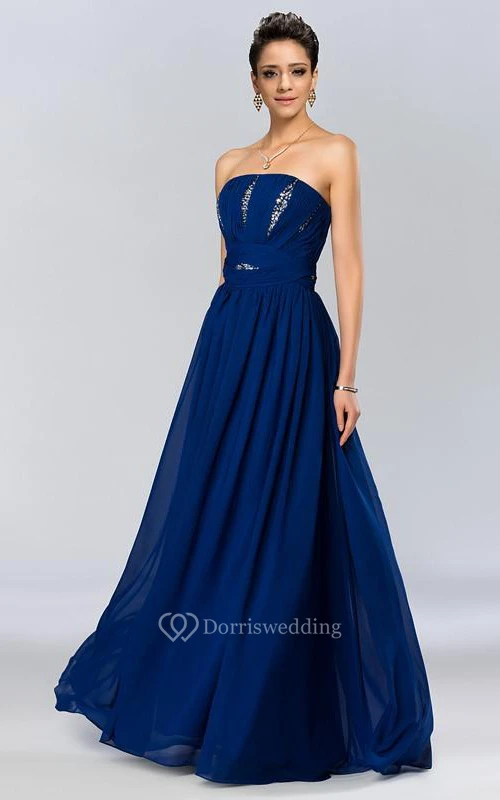 Strapless Pleats Sequins A-Line Long Prom Dress