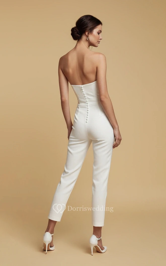Strapless Pointed Toe Heel Ankle Length Wedding Jumpsuit