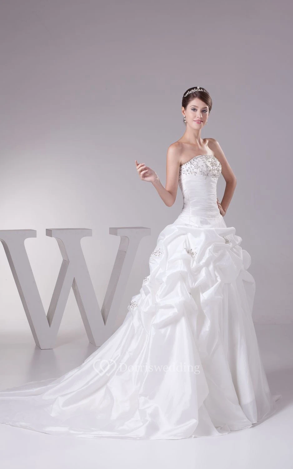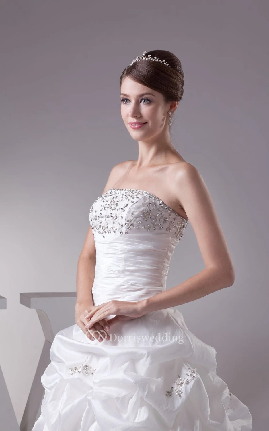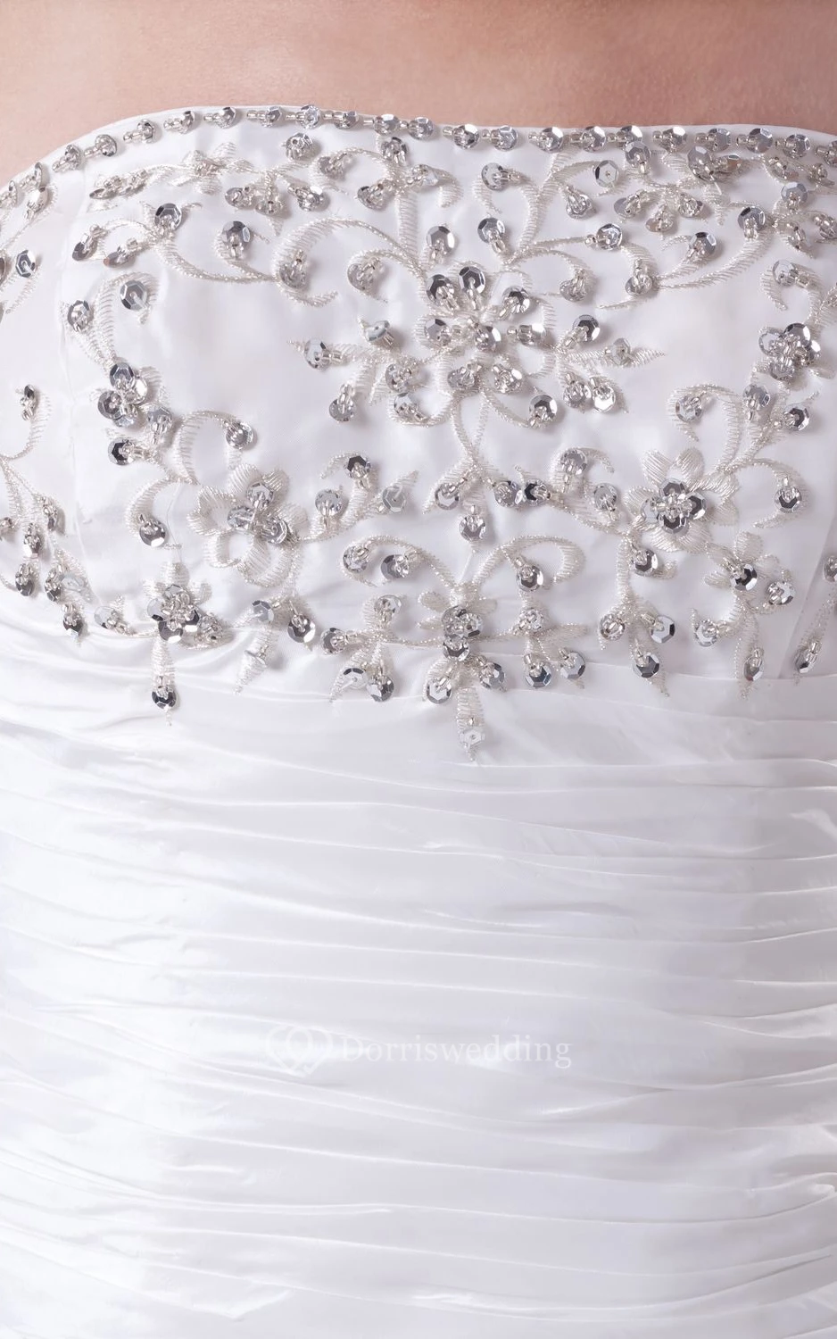 Strapless Ruched A-Line Dress With Beading and Ruching