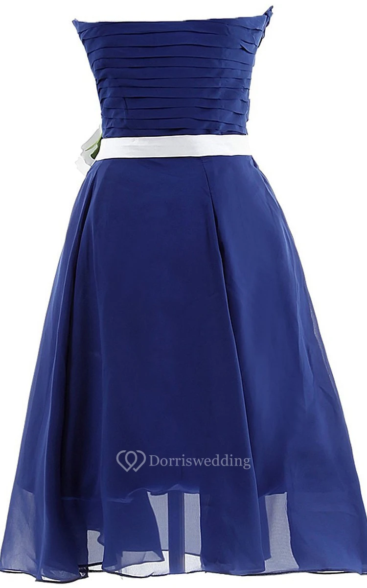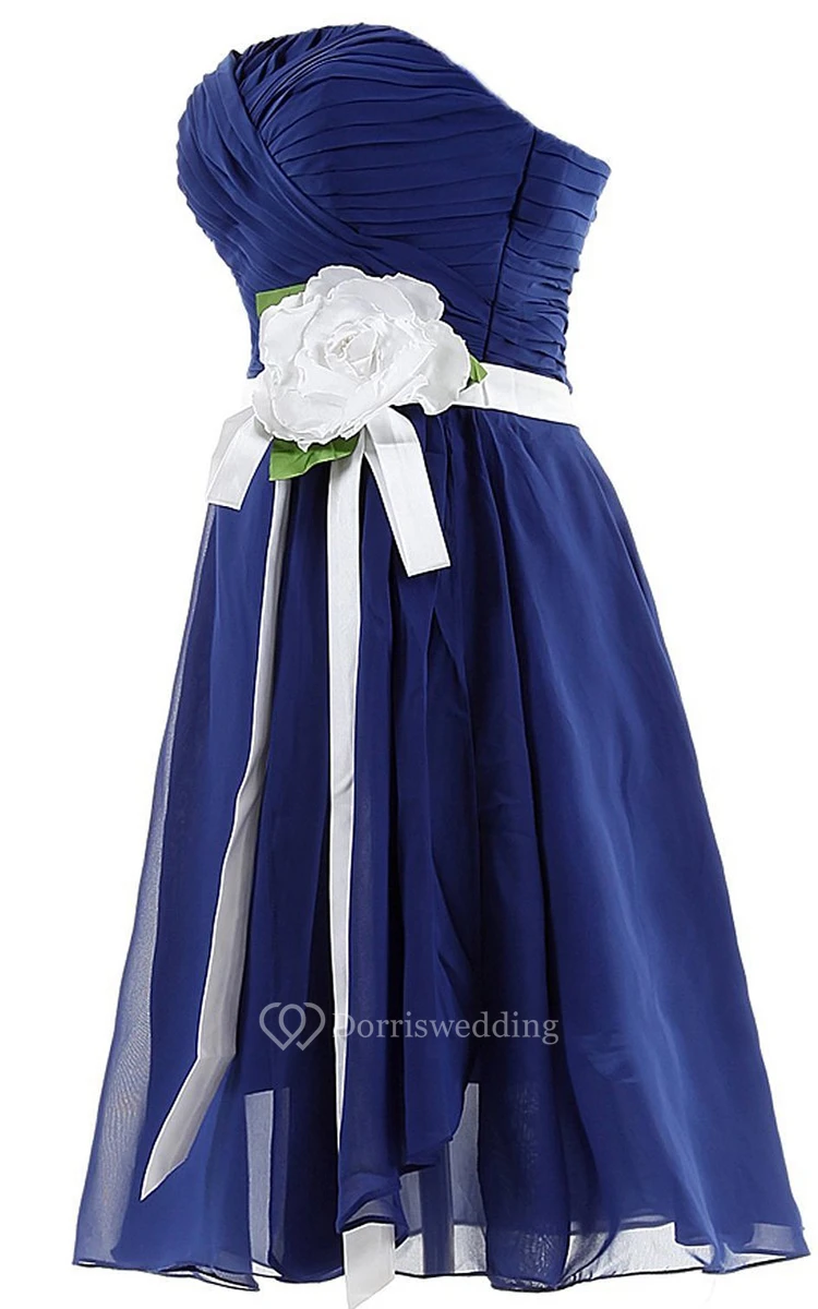 Strapless Ruched A-line Gown With Sash and Flower