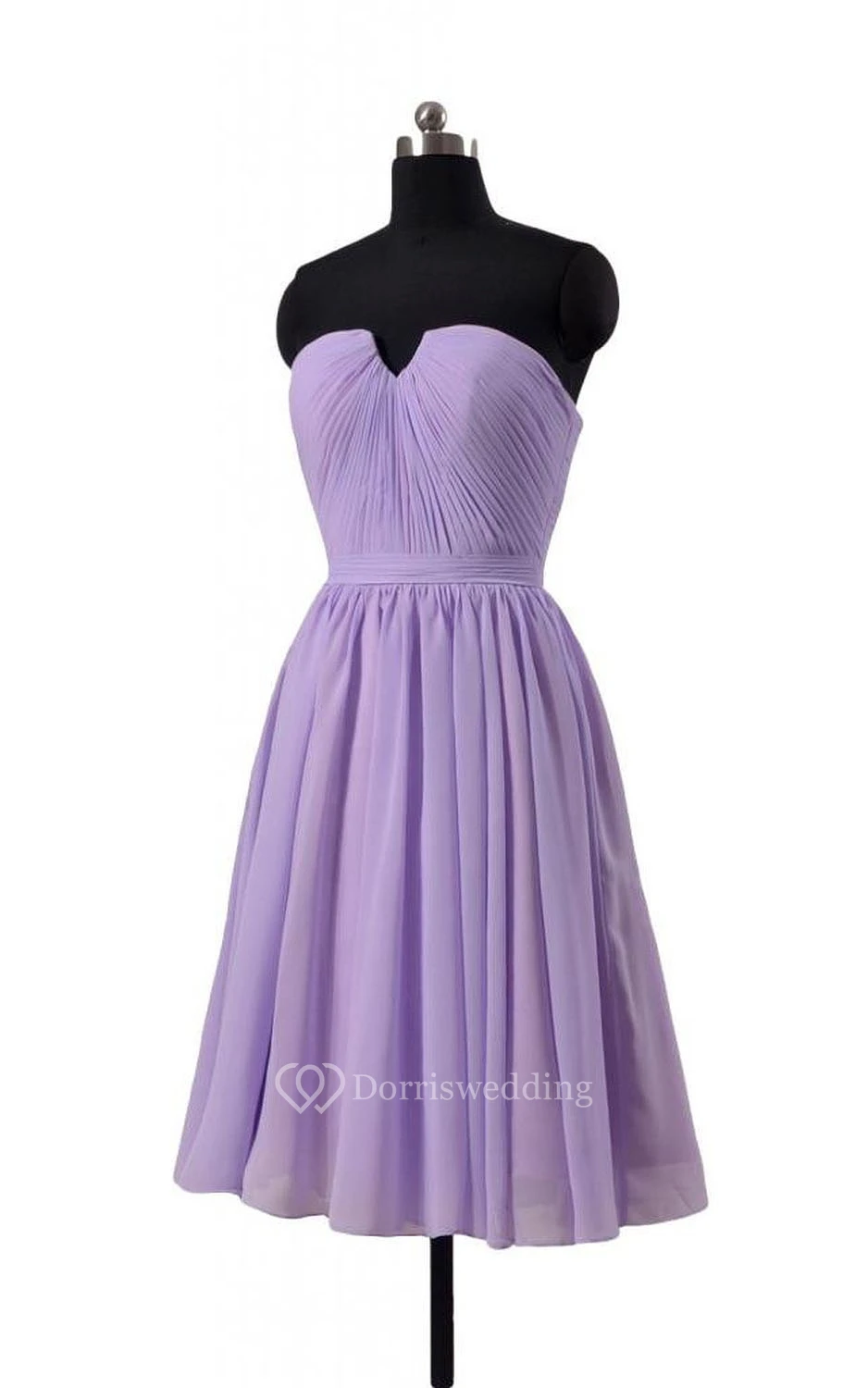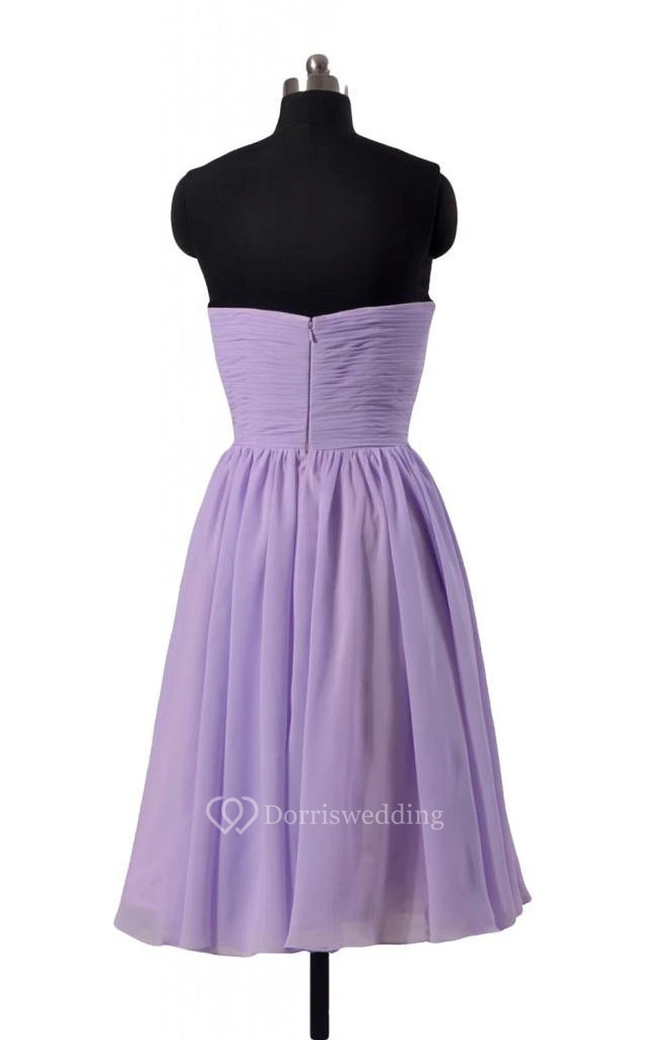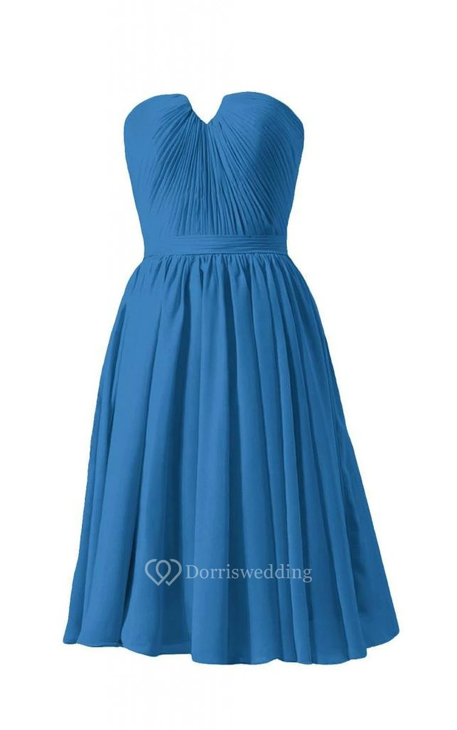 Strapless Ruched Bodice Knee-length Pleated Chiffon Dress