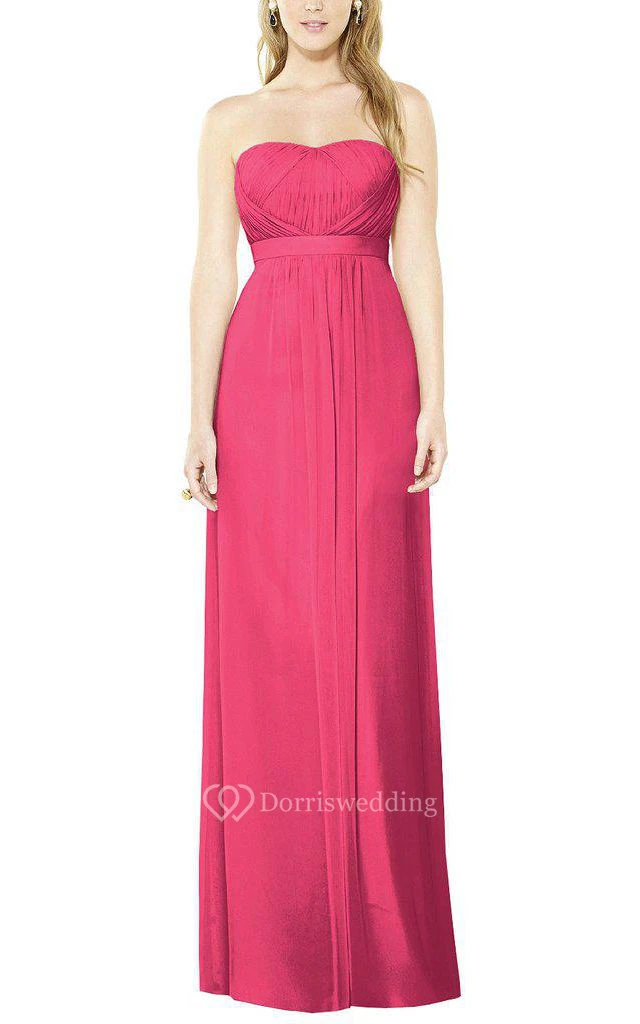 Strapless Ruched Bodice Long Chiffon Bridemaid Dress