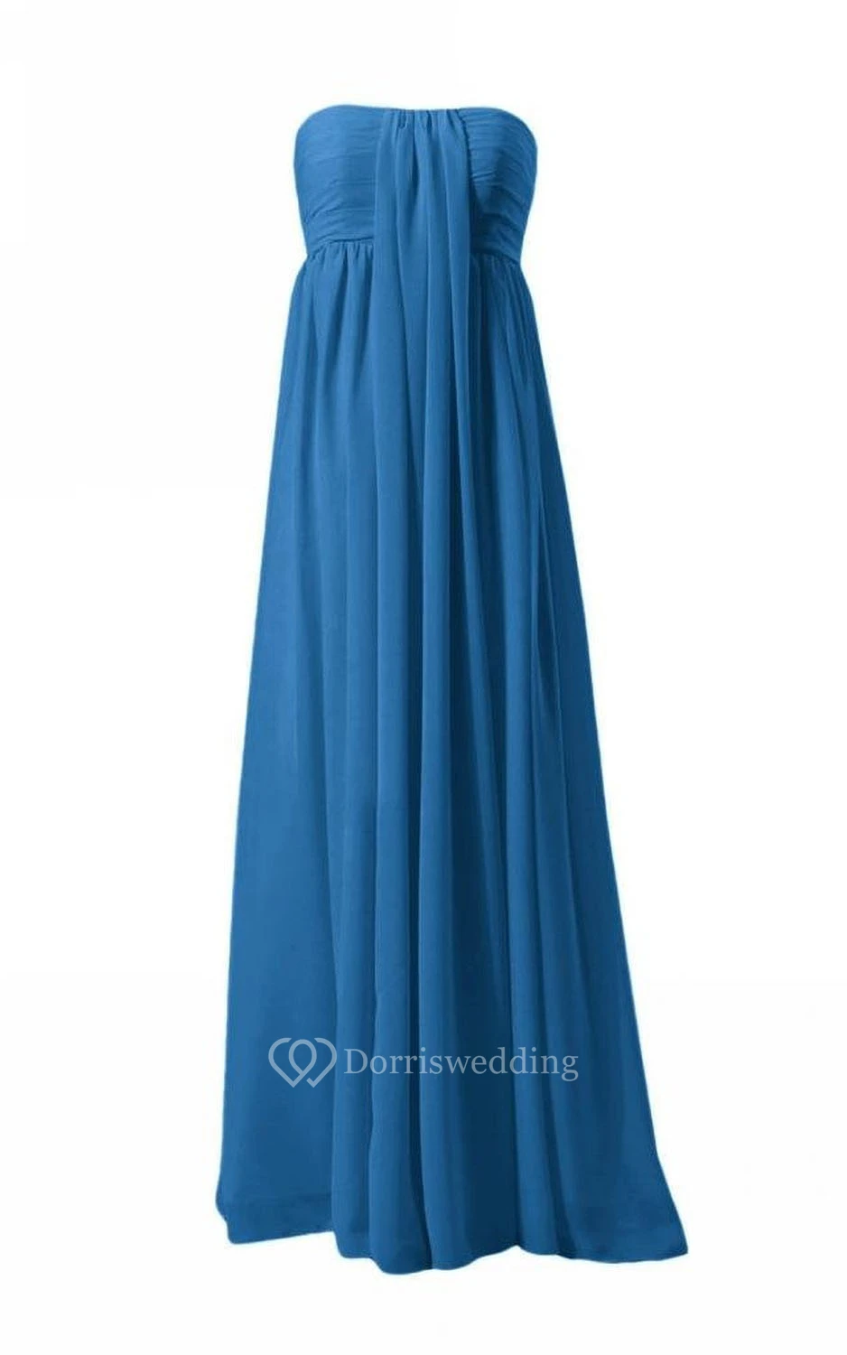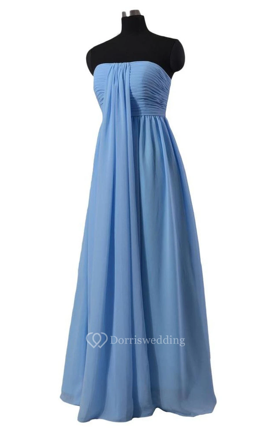 Strapless Ruched Bodice Long Layered Chiffon Dress