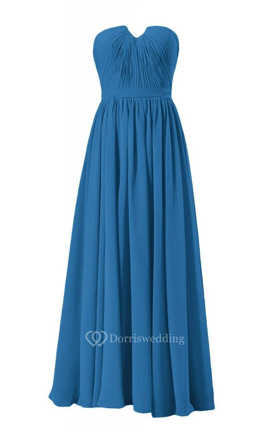 Strapless Ruched Bodice Long Pleated Chiffon Dress