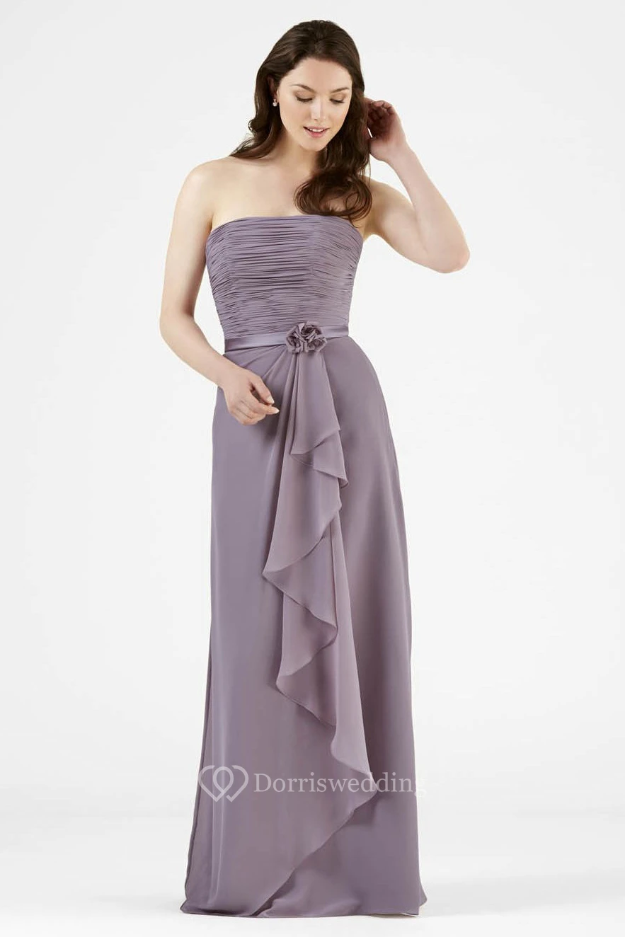 Strapless Ruched Chiffon Bridesmaid Dress With Flower And Draping