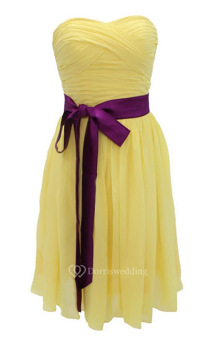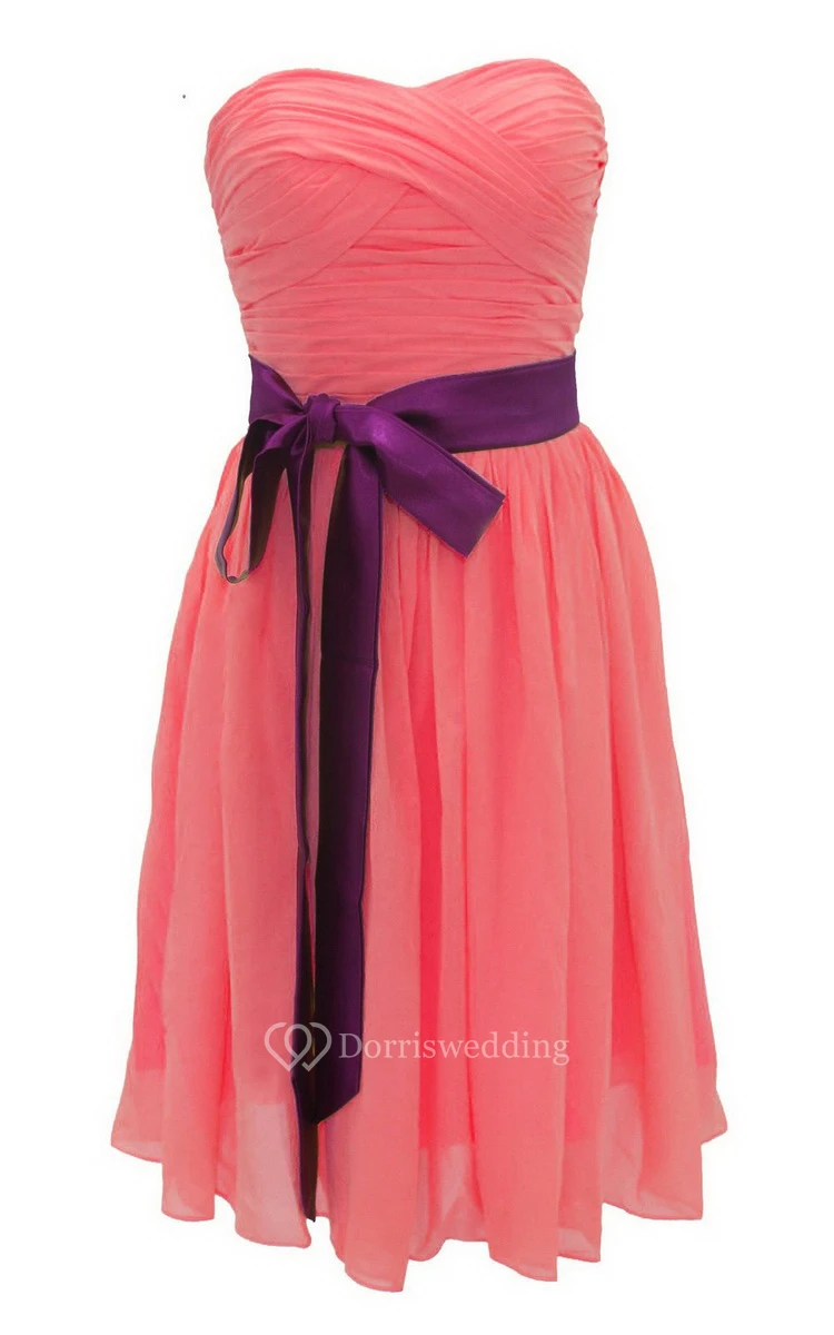 Strapless Ruched Dress WIth Satin Sash and Drapping