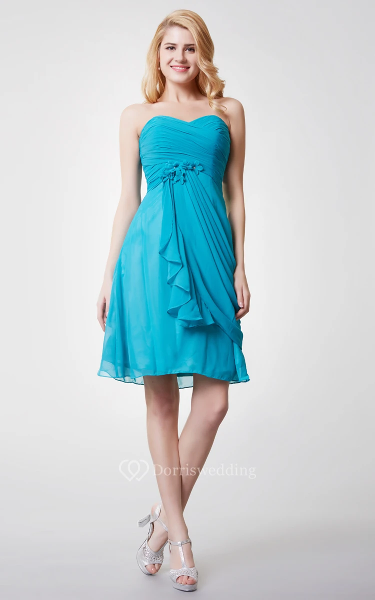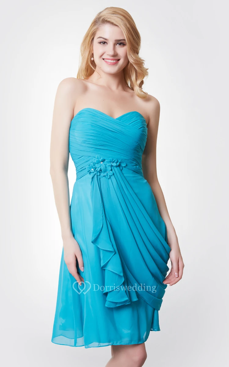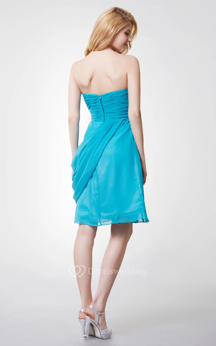 Strapless Ruched Short Chiffon Dress With Side Draping