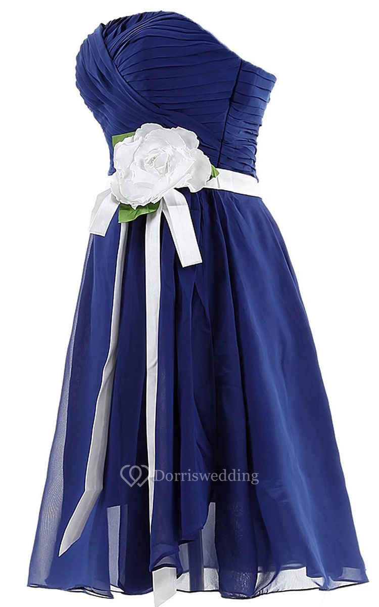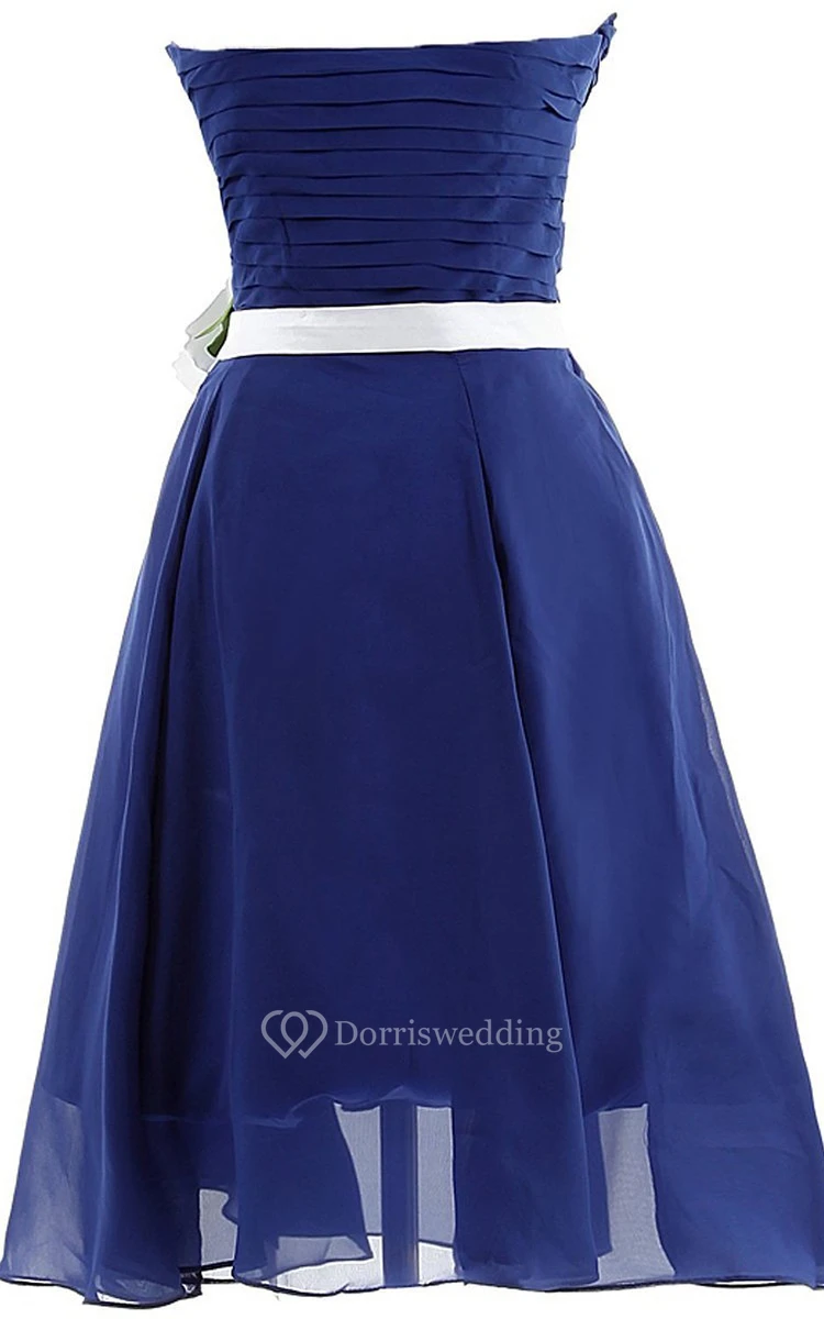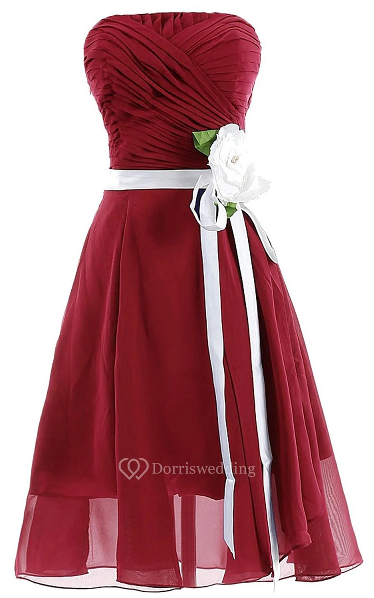 Strapless Ruching and Pleated Dress With Satin Bow