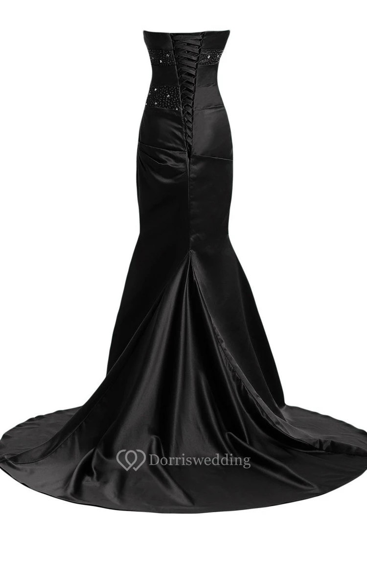 Strapless Satin Mermaid Gown With Beadings and Ruching