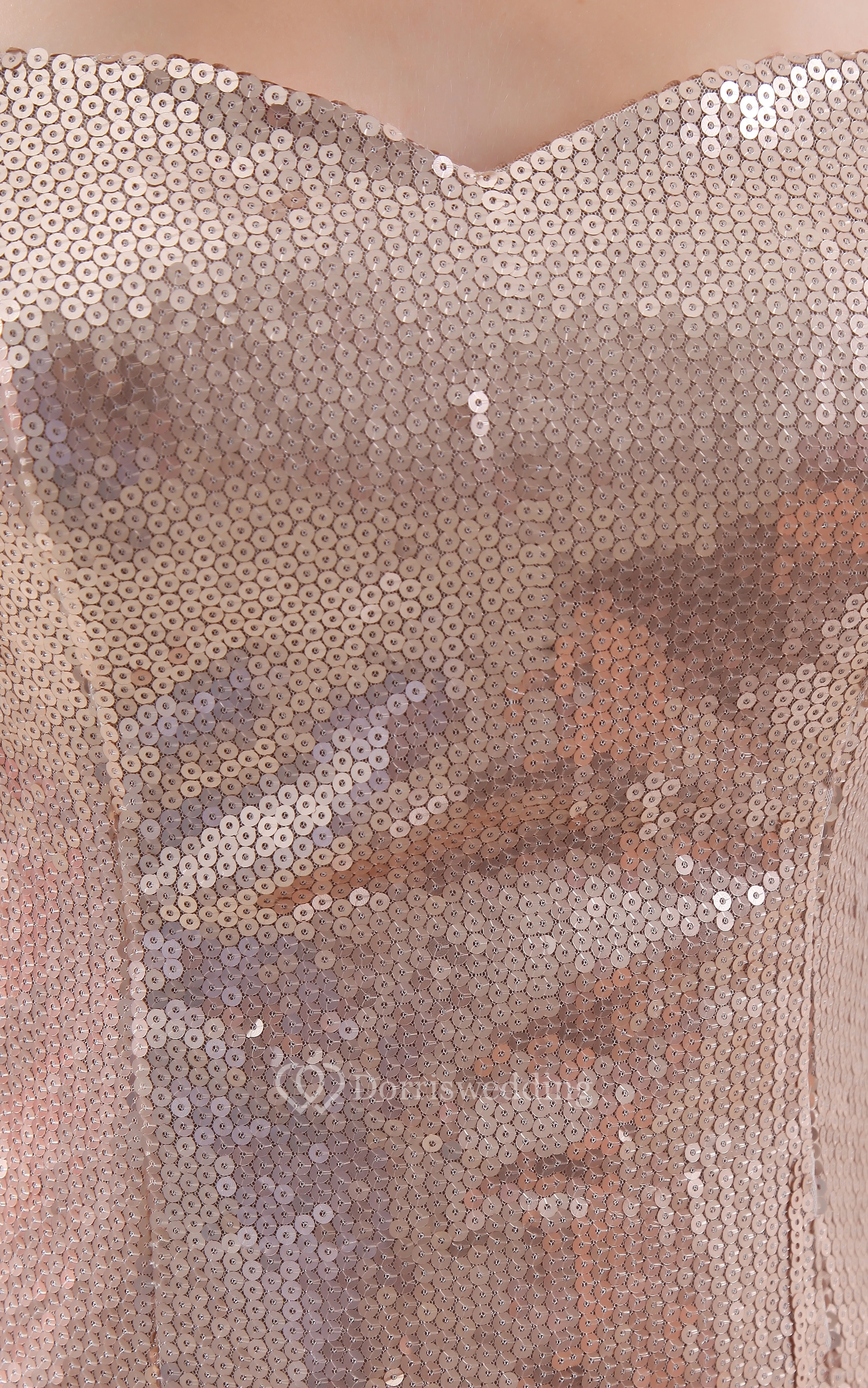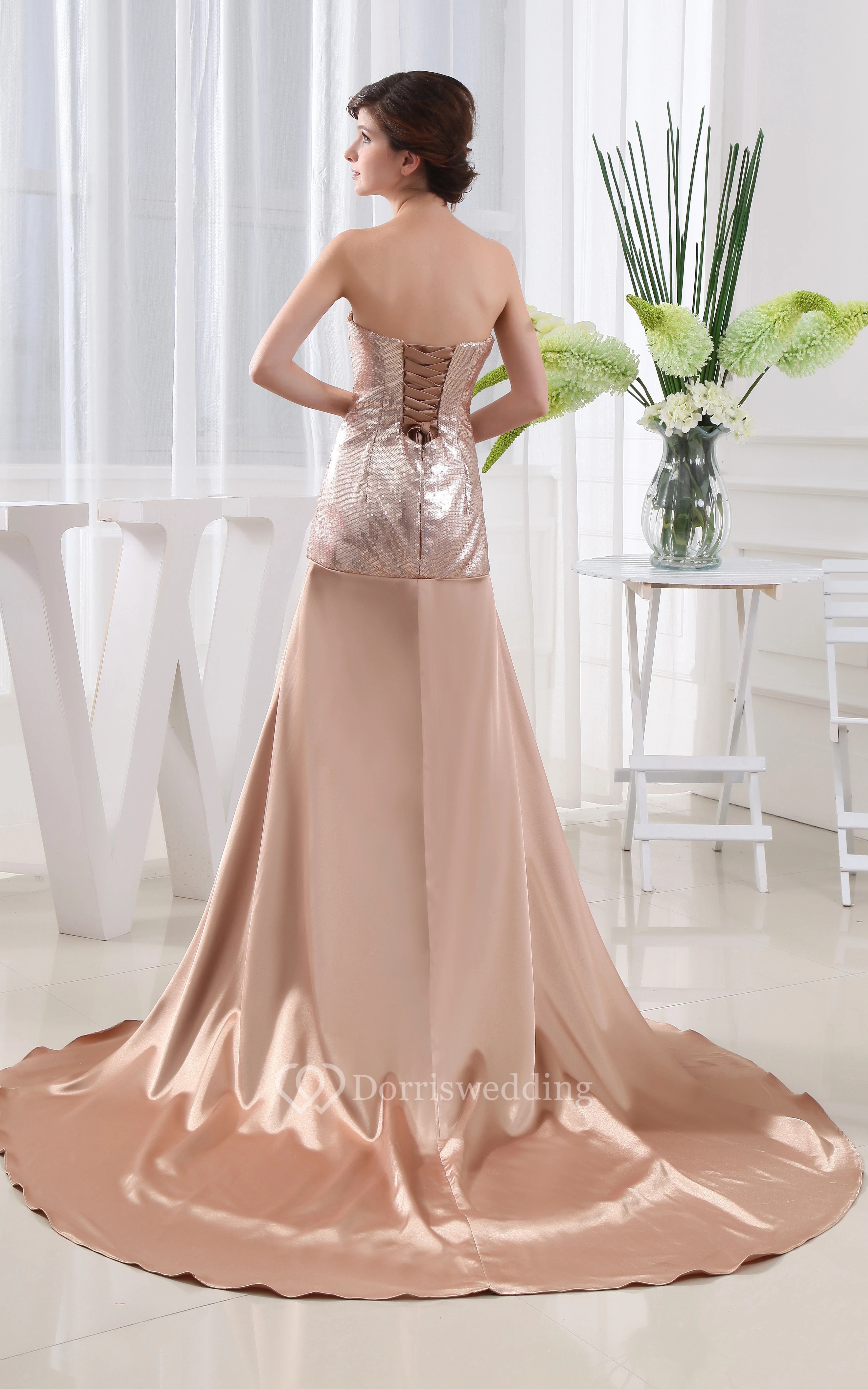 Strapless Sequined Long Dress With Front Slit and Court Train