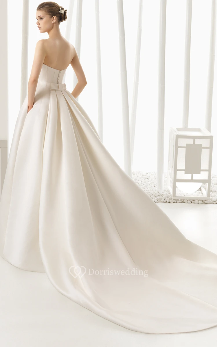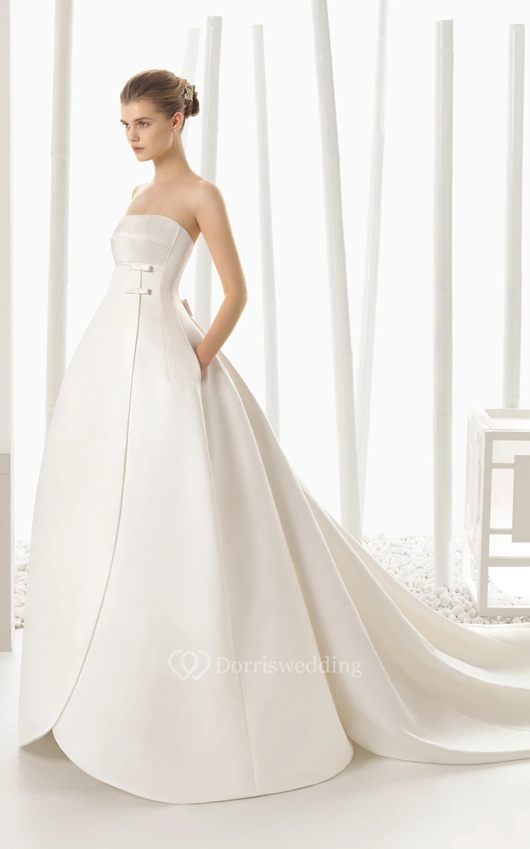 Strapless Shaped Satin Tulip Gown With Pockets