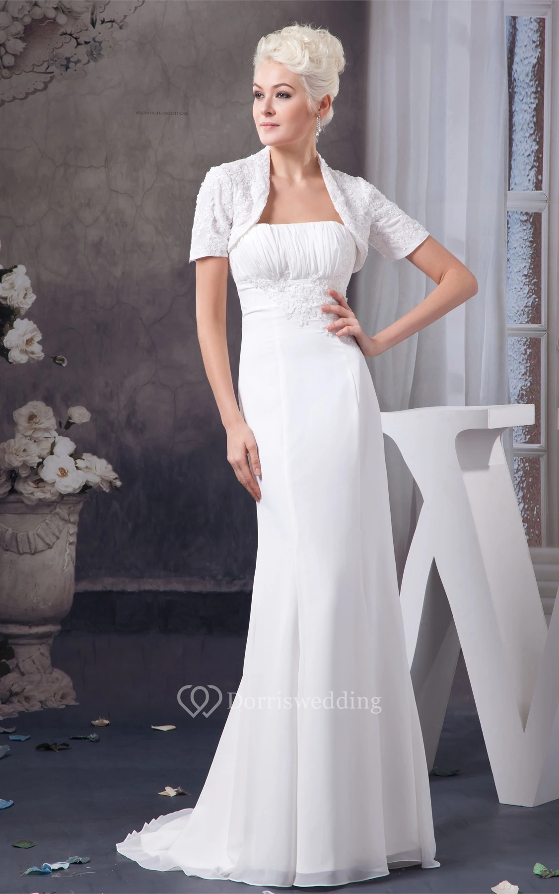 Strapless Sheath Chiffon Bolero and Dress With Lace