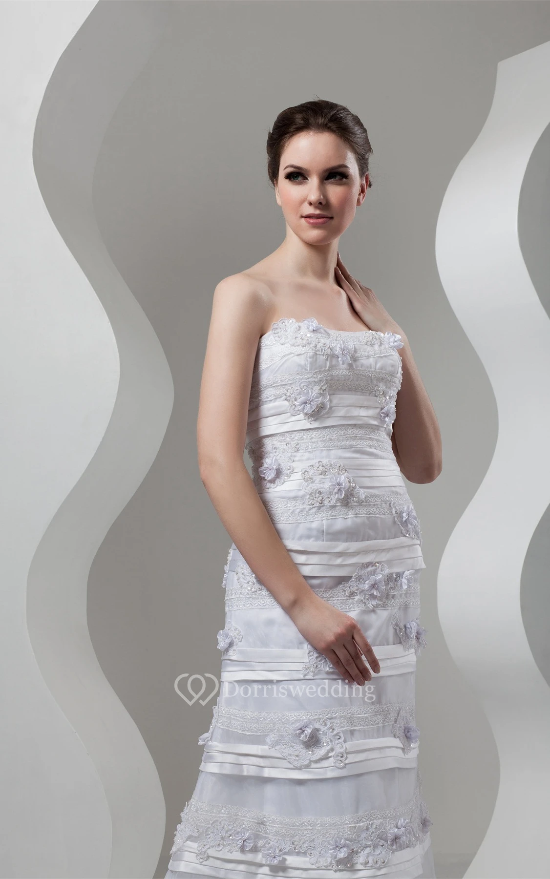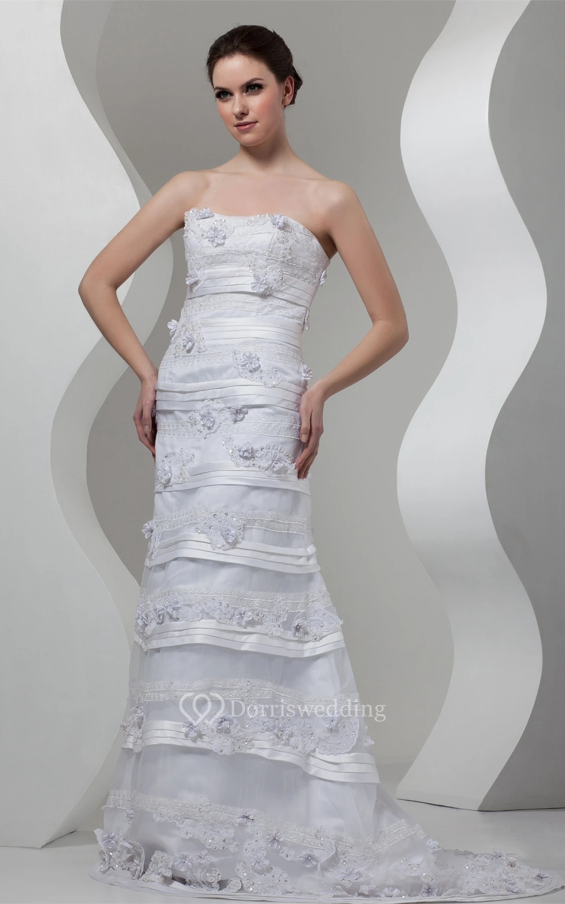 Strapless Sheath Floor-Length Lace Sweep Train and Dress With Flower