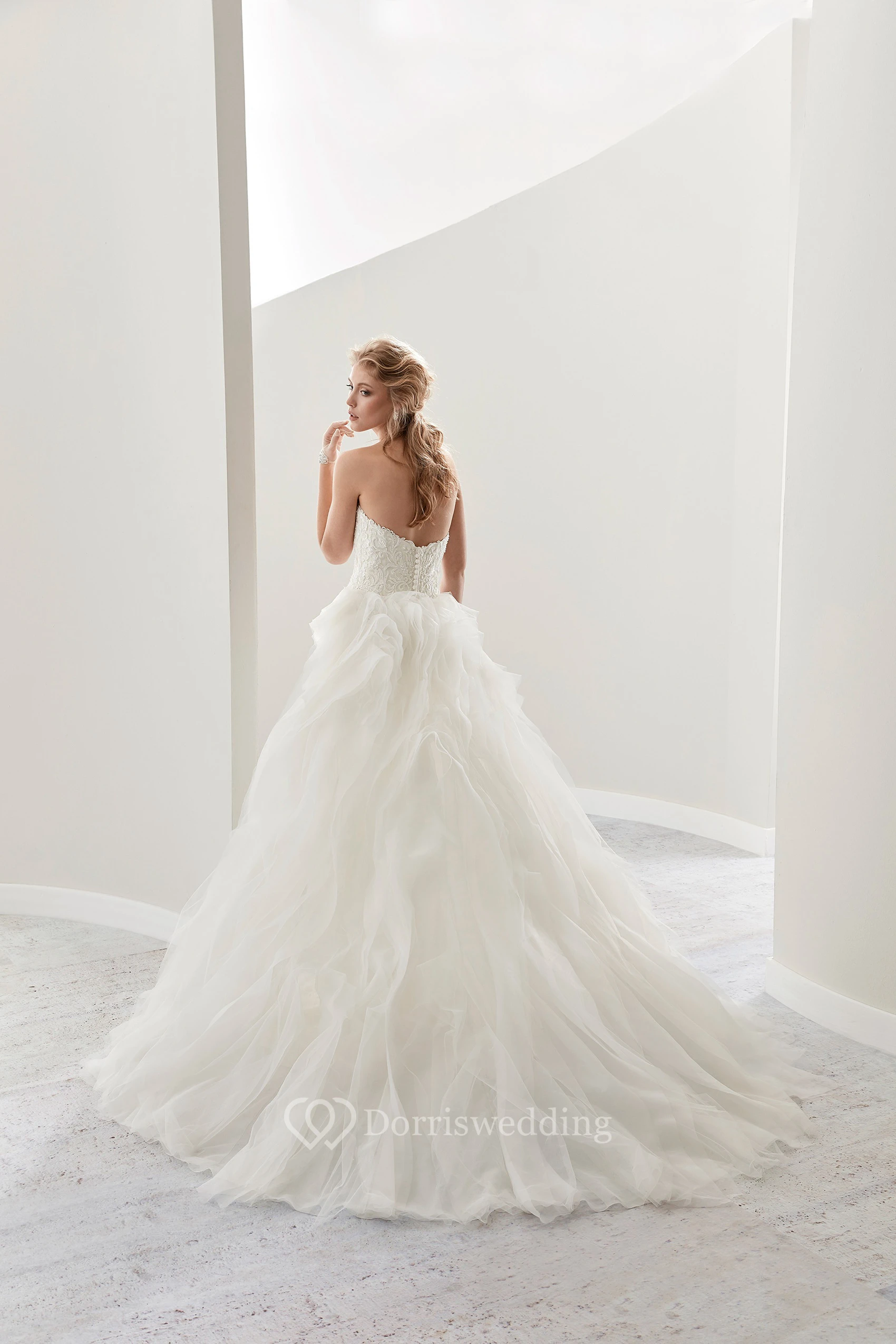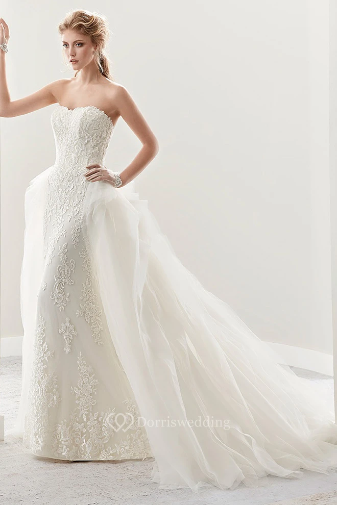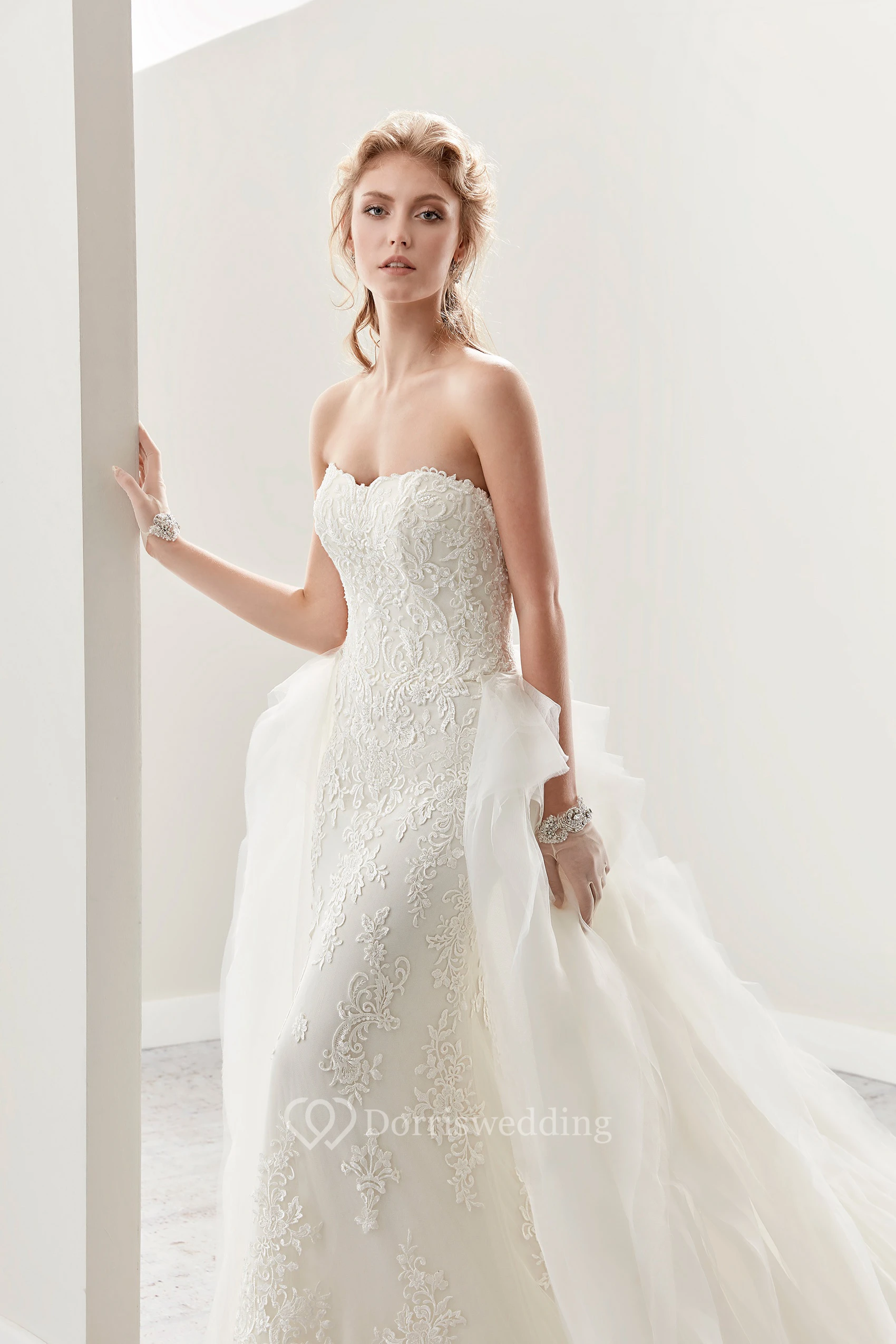Strapless Sheath Lace Bridal Gown With Ruffles Brush Train