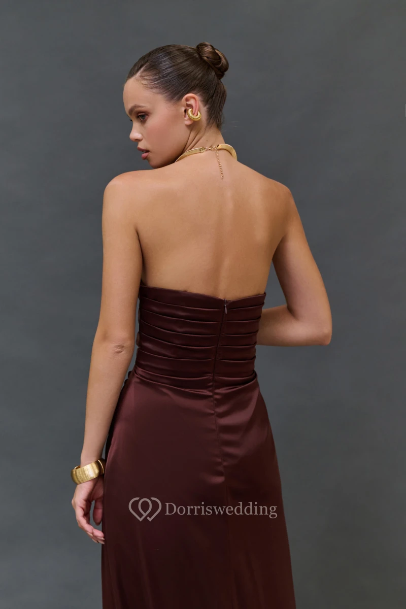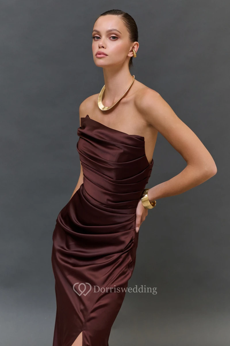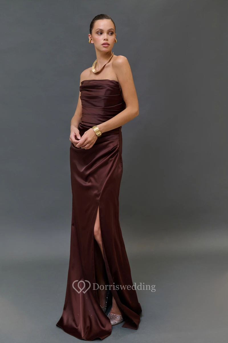 Strapless Sheath Ruched Front Split Floor-length Dress