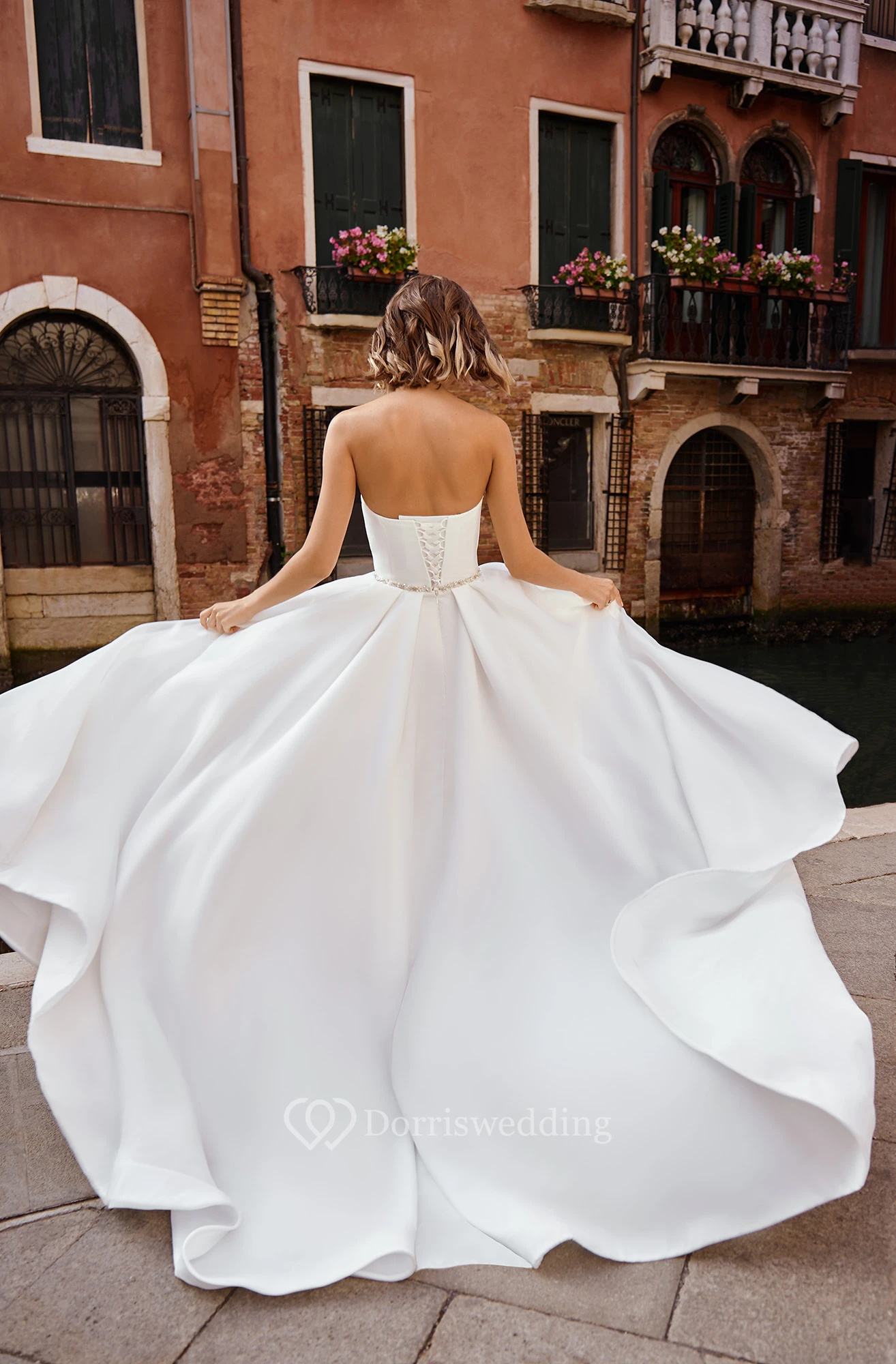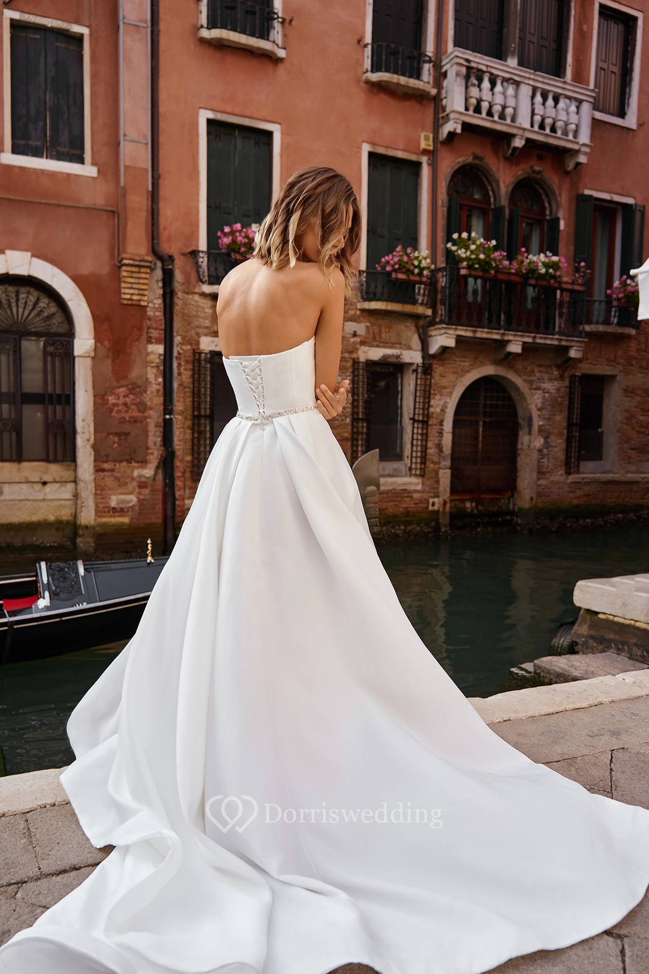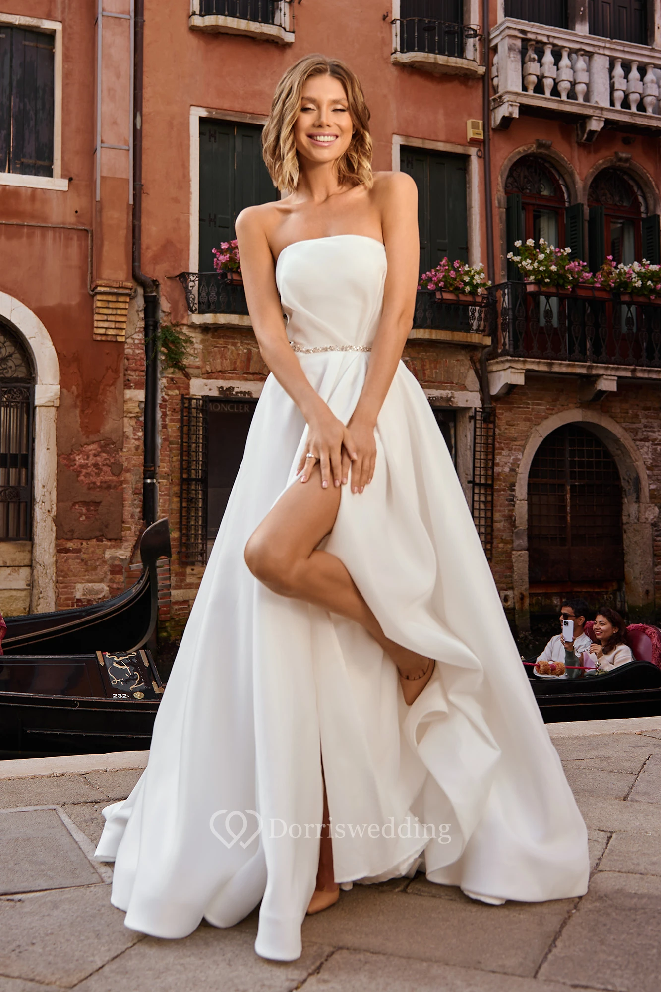 Strapless Simple Empire A-line Front Split Wedding Dress with Beaded Waist