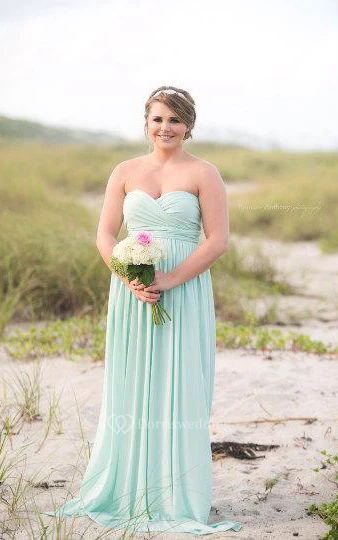 Strapless Sweetheart A-line Pleated Chiffon Long Dress With Ruching