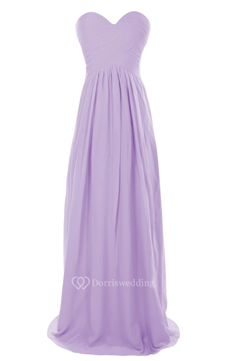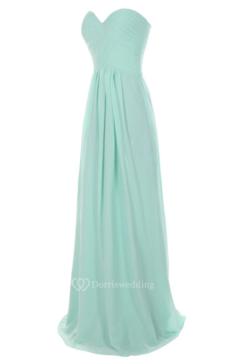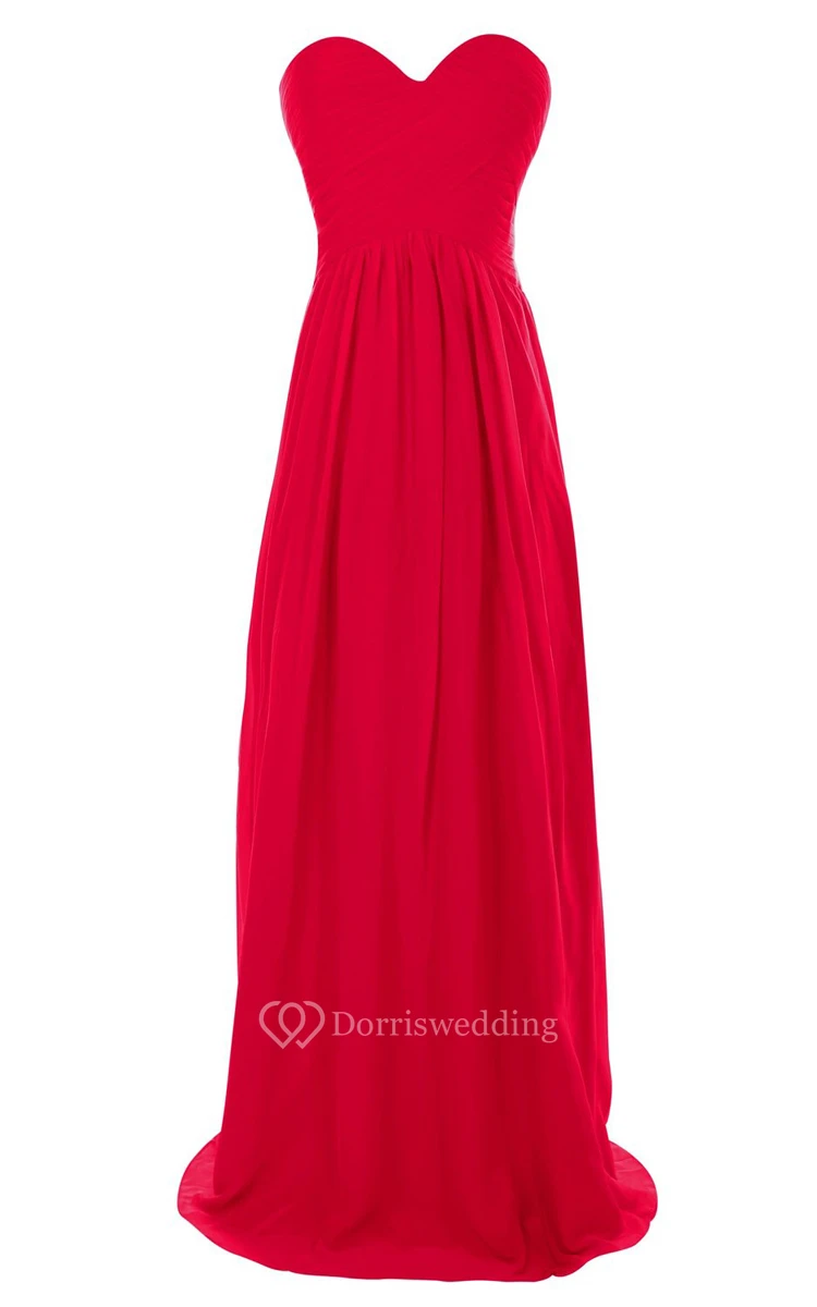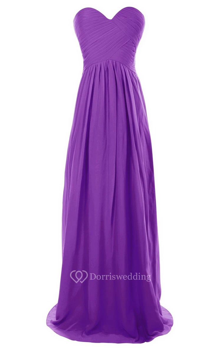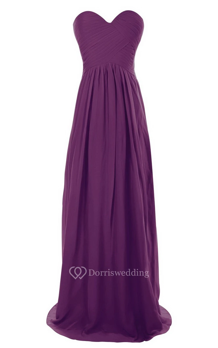Strapless Sweetheart Ruched Chiffon A-line Gown With Train