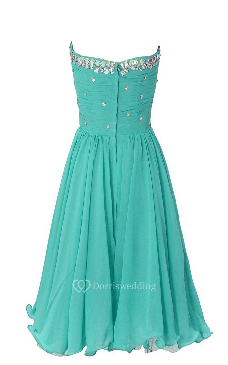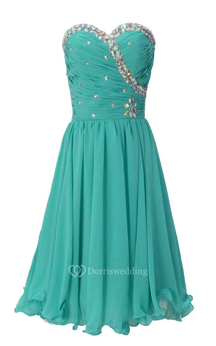 Strapless Sweetheart Ruffled Short Dress With Rhinestones