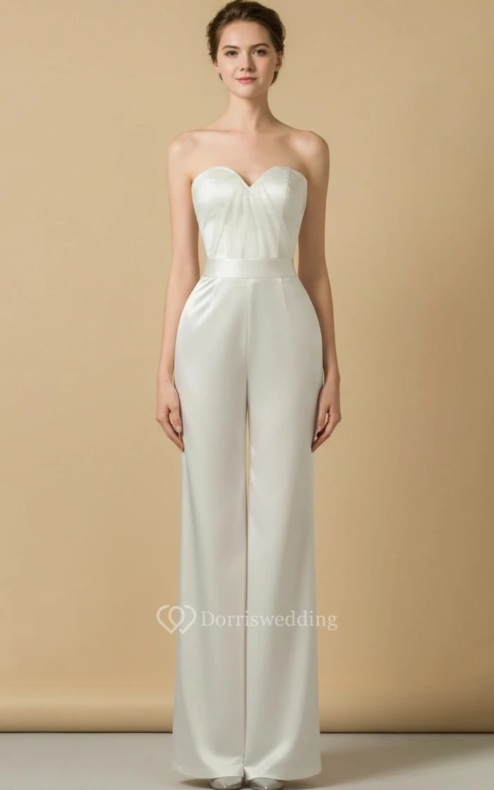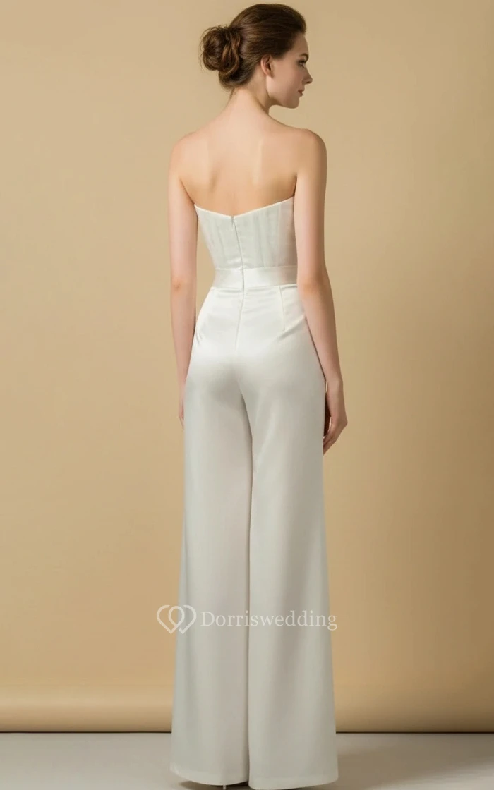 Strapless Sweetheart Waist Pleated Multi Layer Tulle Wedding Jumpsuit