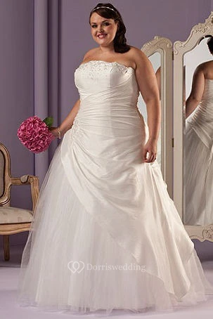 Strapless Taffeta Wrapped Bridal Ball Gown With Lace Up And Tulle Skirt