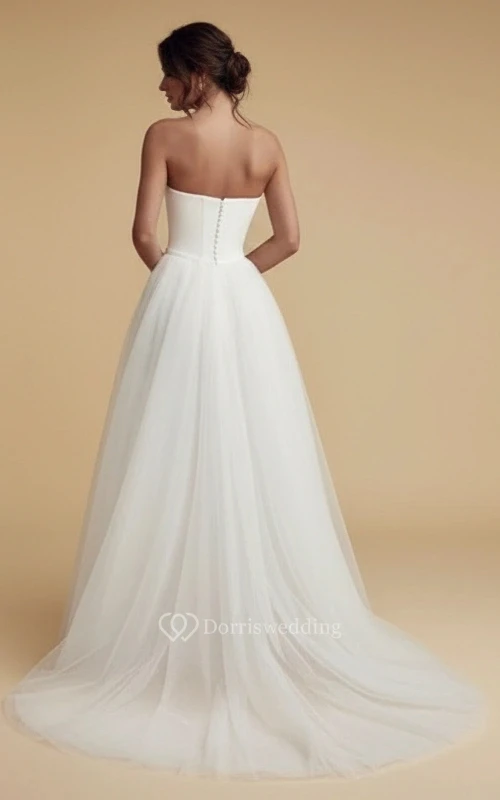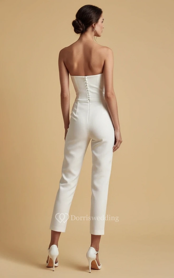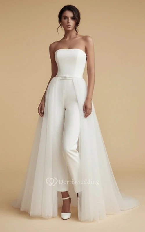 Strapless Thin Waistband High Waist Wide Leg Wedding Jumpsuit with Tulle Skirt