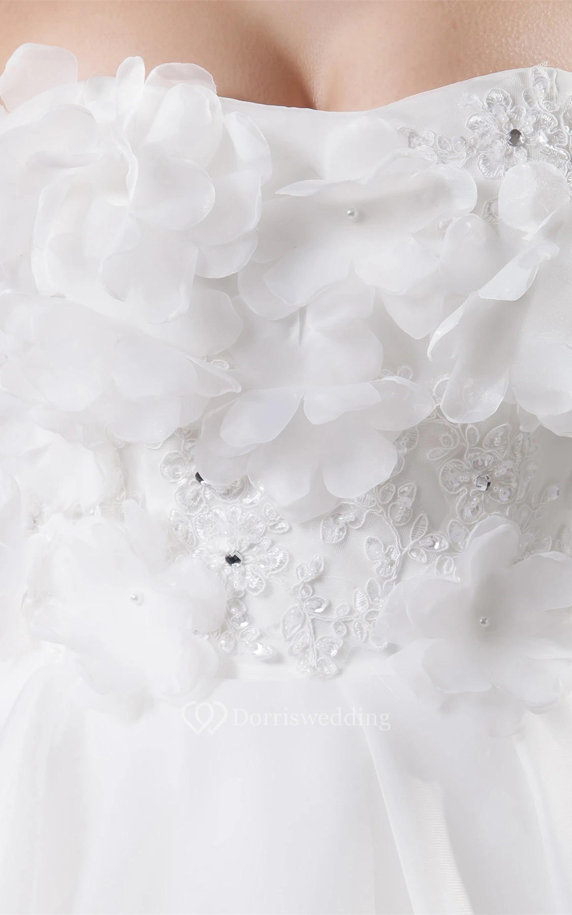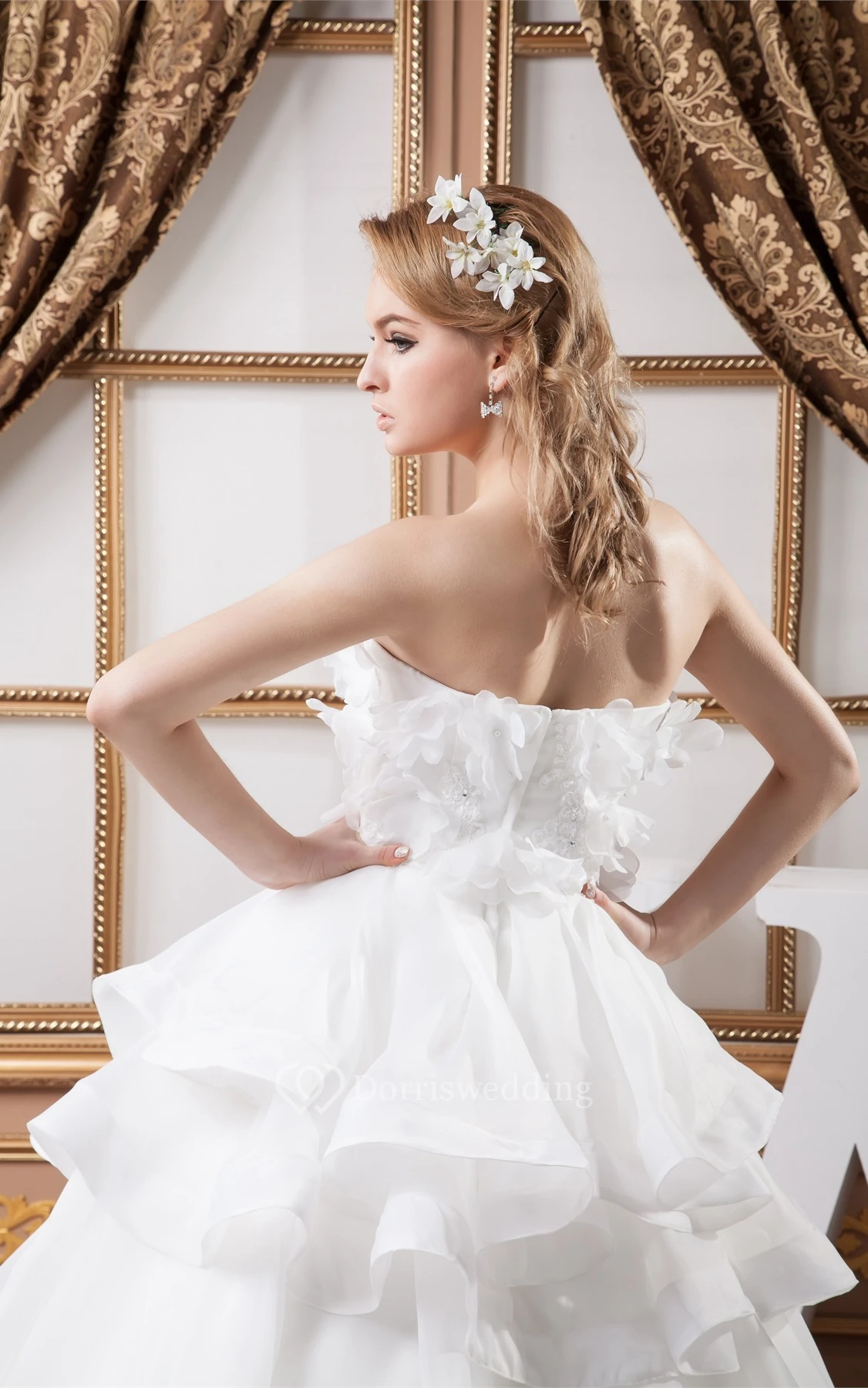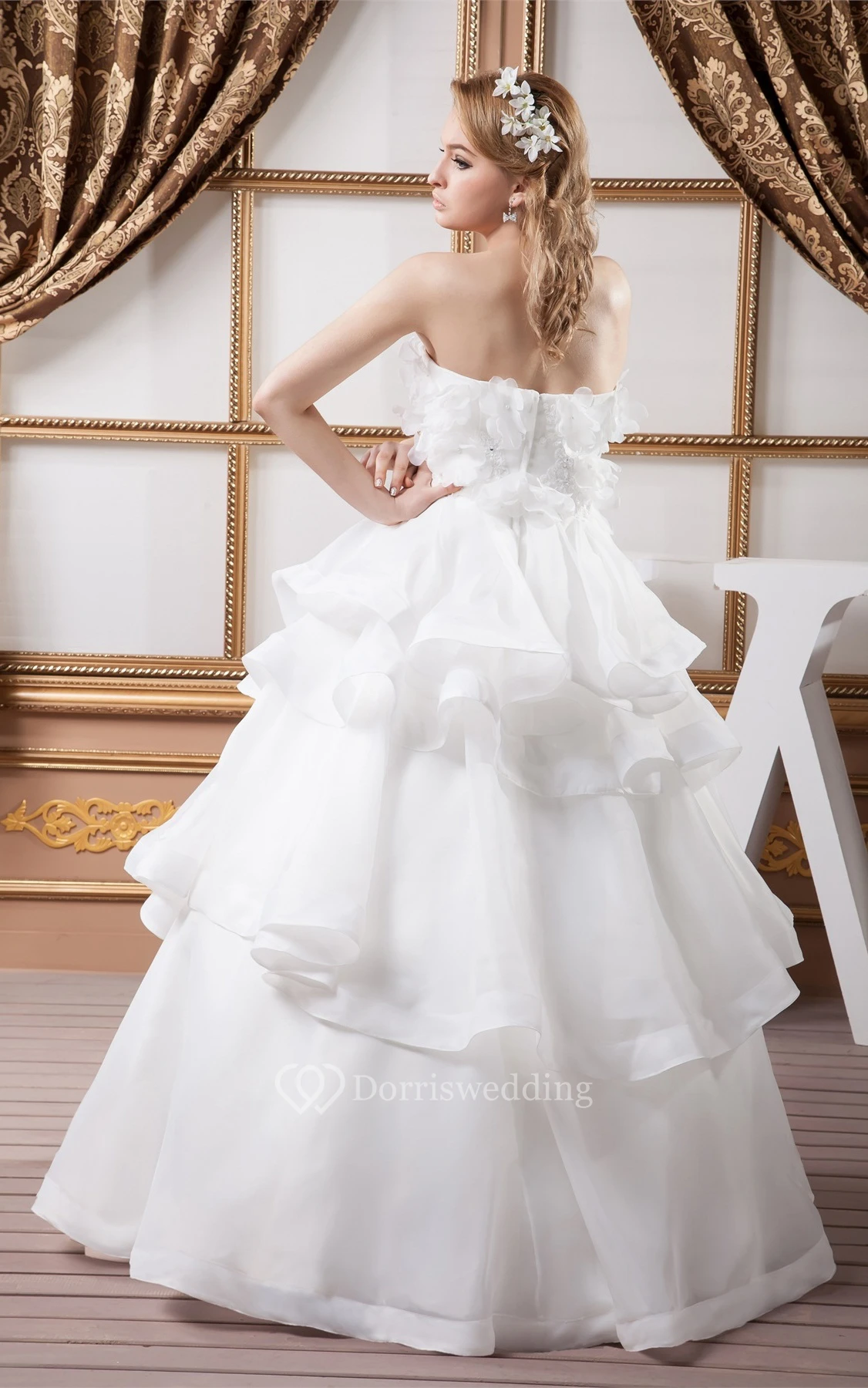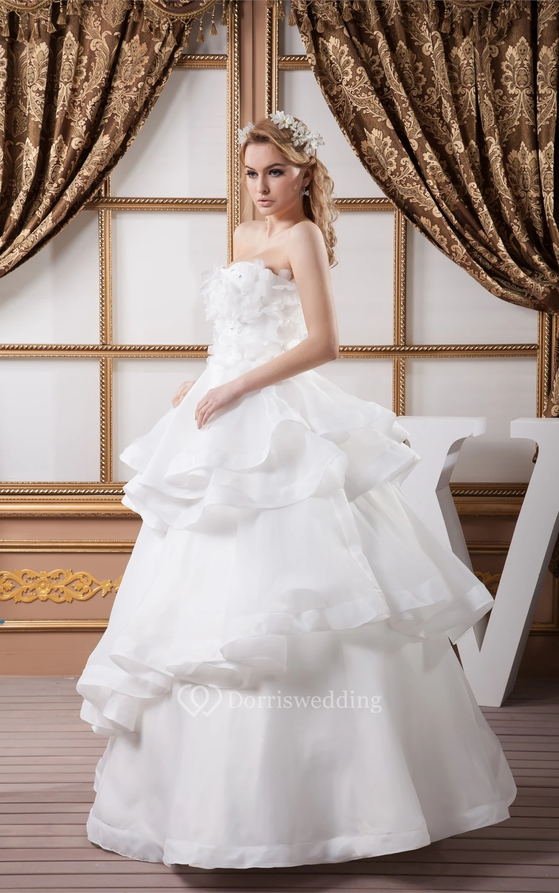 Strapless Tiered A-Line Ball-Gown With Floral Top