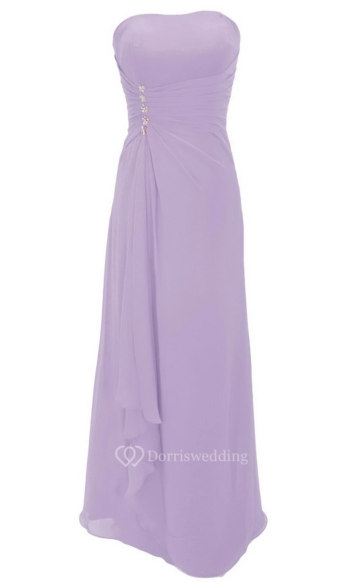 Strapless Tiered Chiffon Dress With Draping and Beading