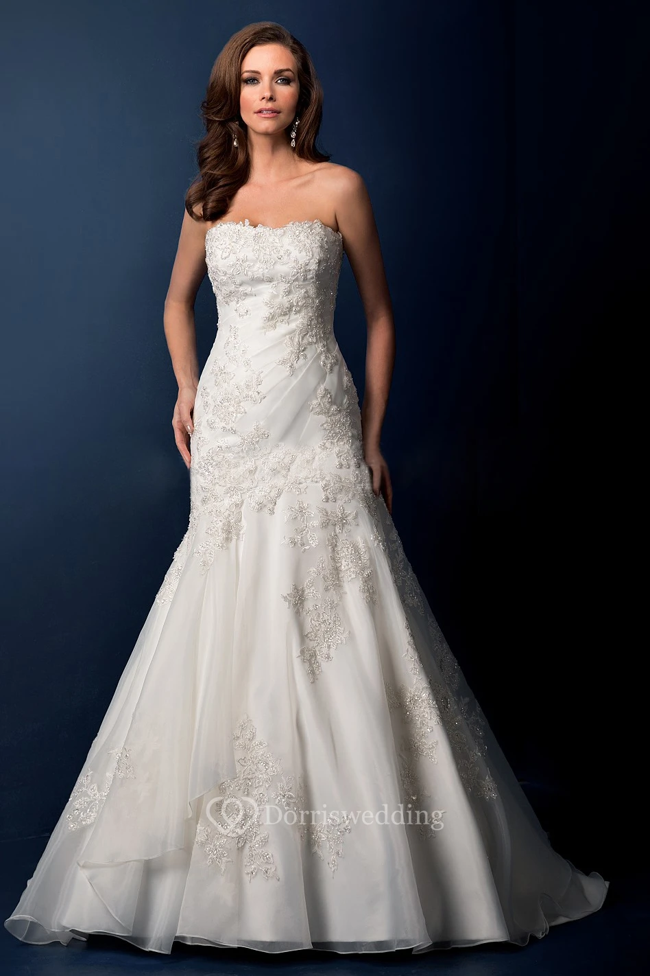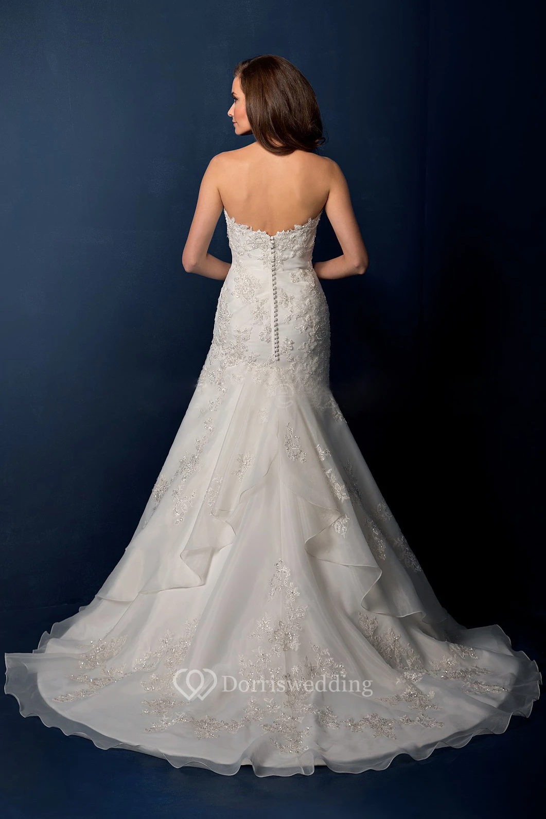 Strapless Trumpet Wedding Dress With Ruffles And Appliques