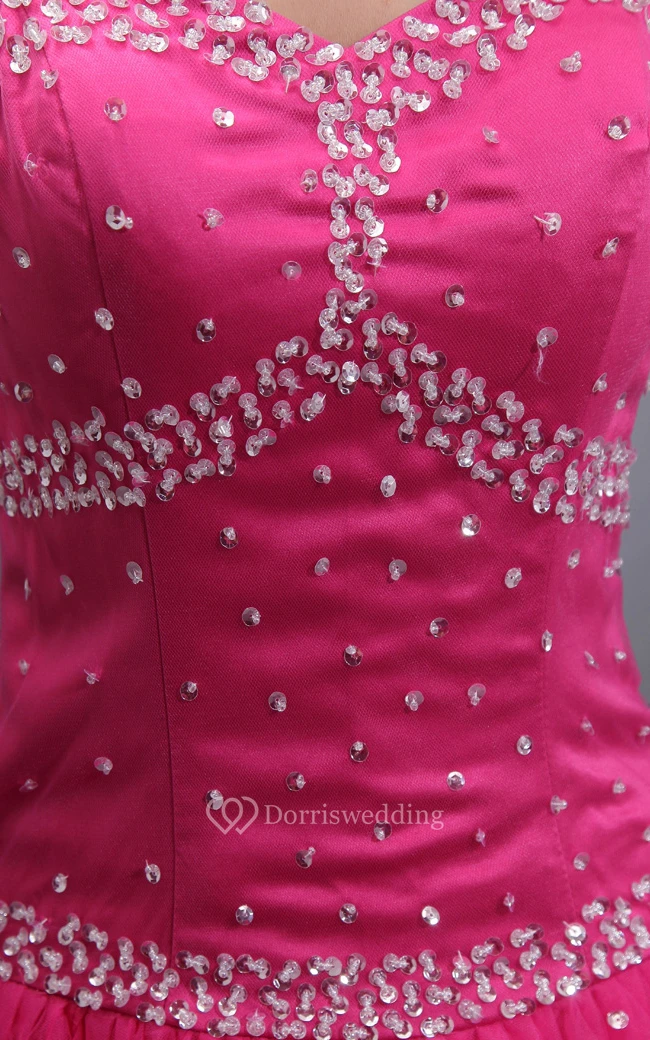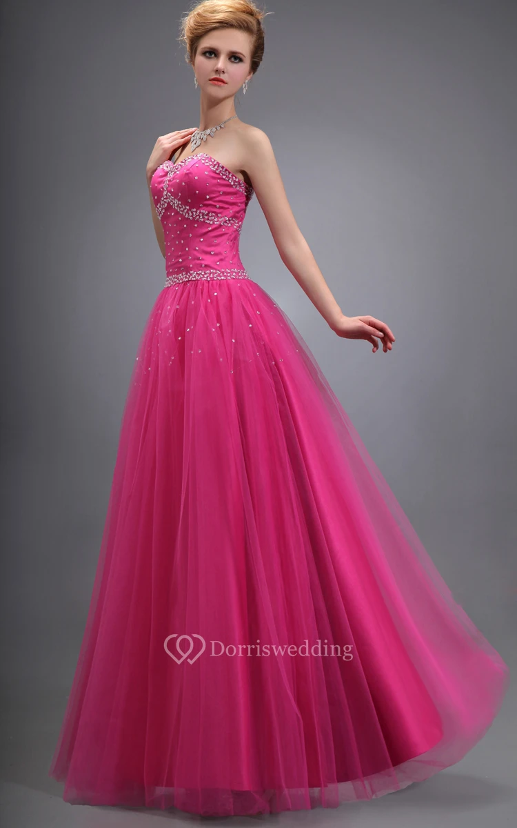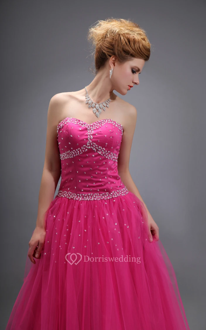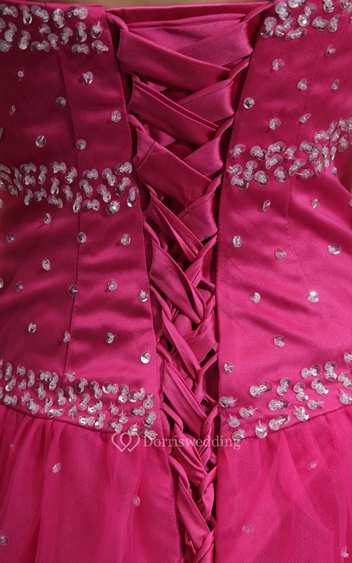 Strapless Tulle Long Dress With Beadings and Lace-Up Back