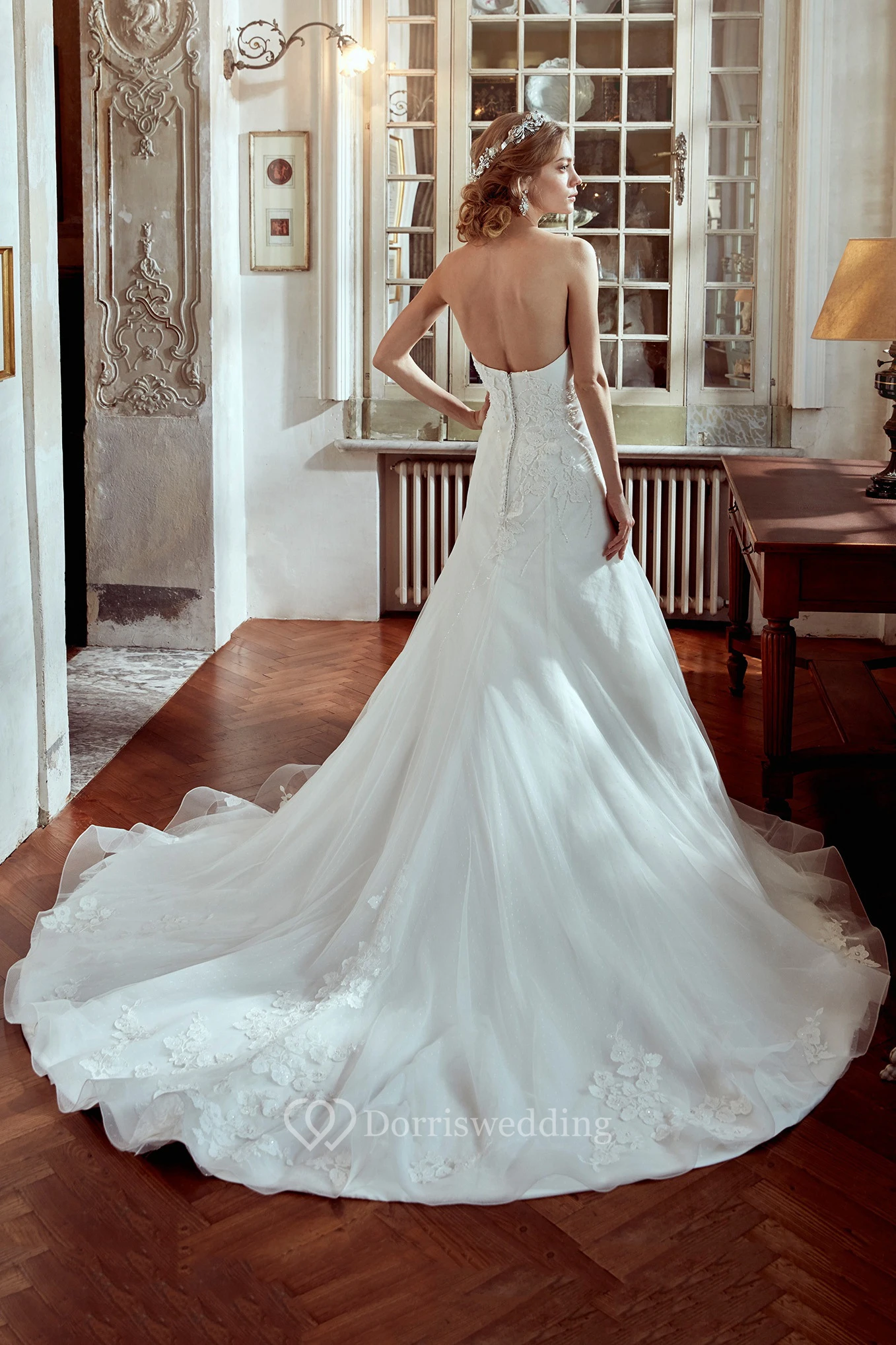 Strapless Wedding Dress With Beaded Appliques and Brush Train