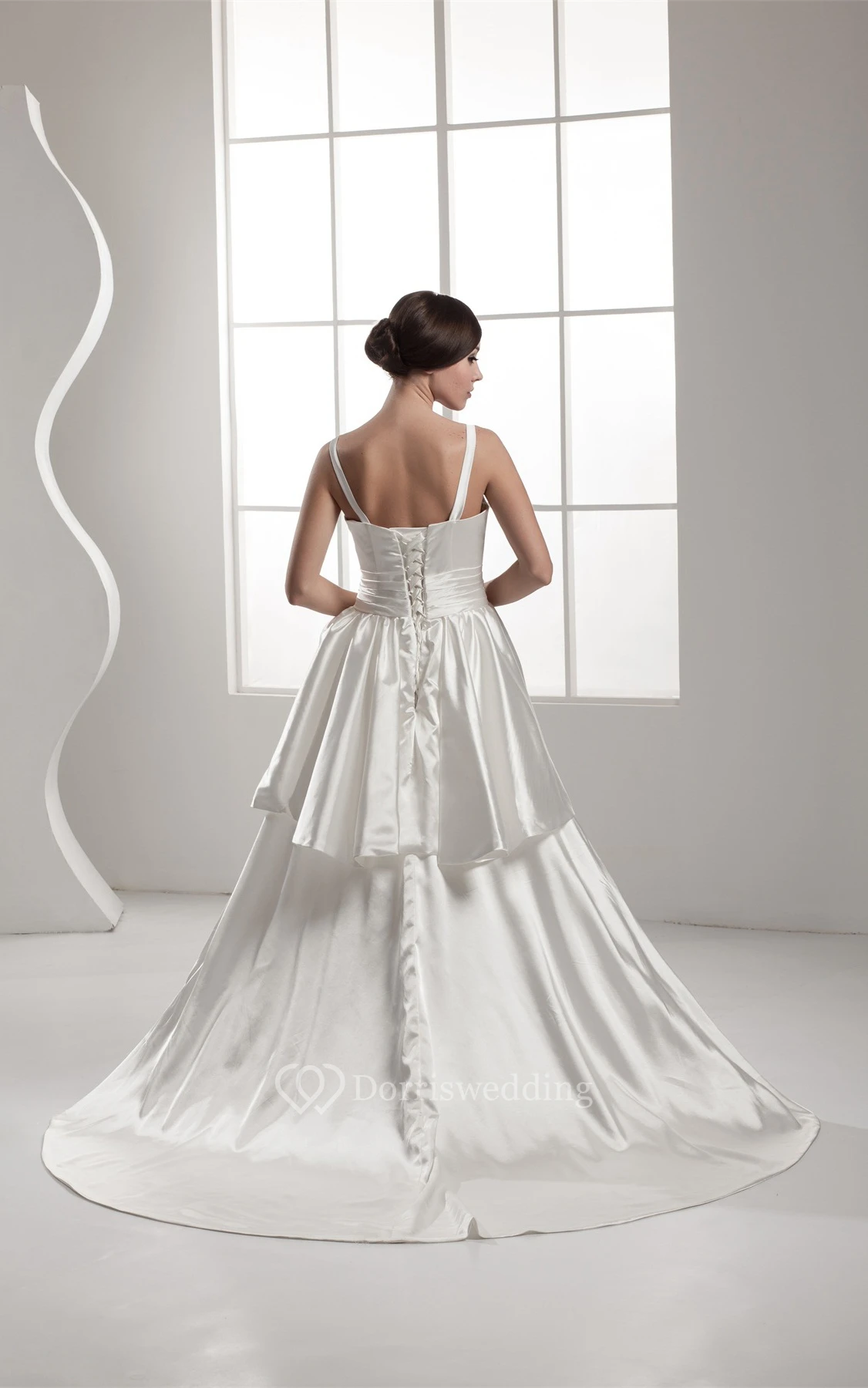 Strapped A-Line Pick-Up Corset Back and Gown With Ruching