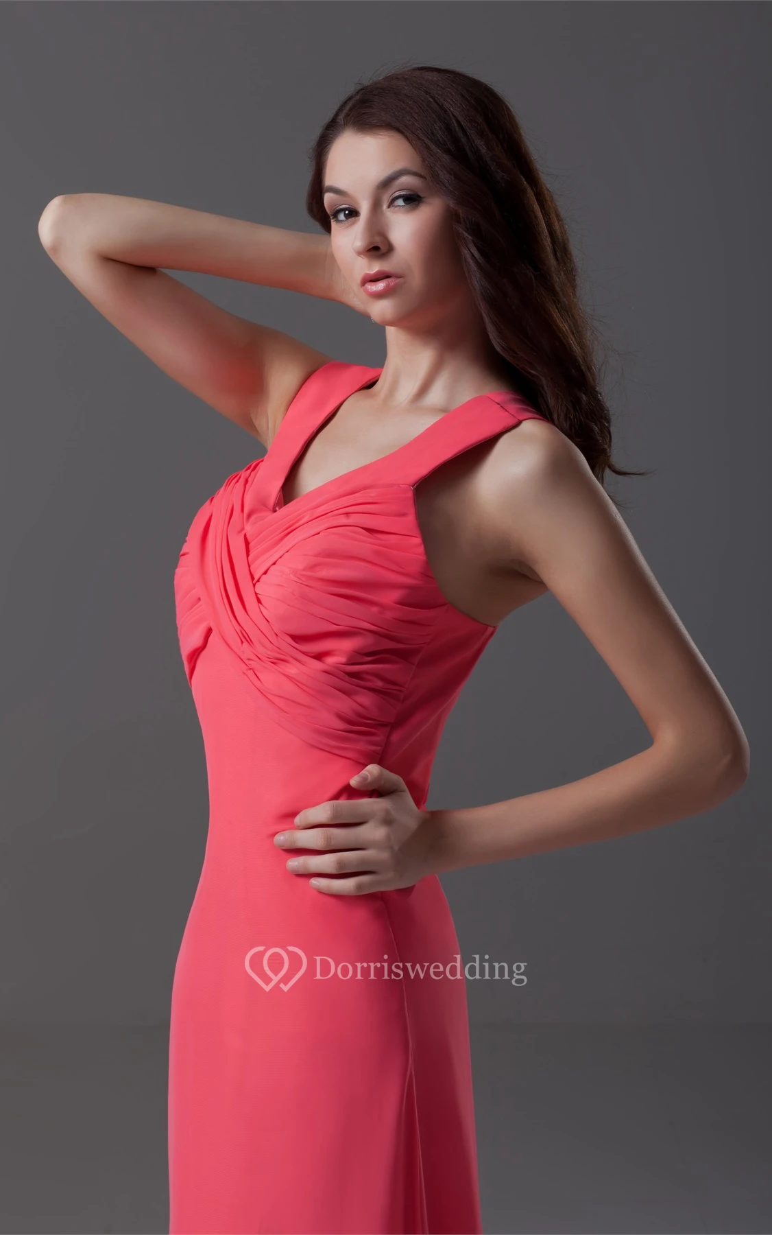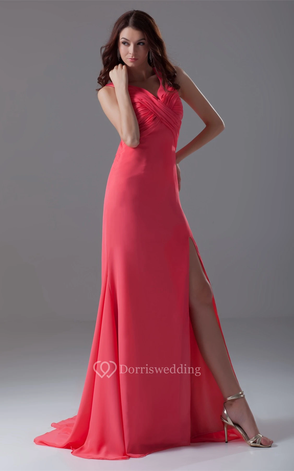 Strapped Chiffon Front-Split Dress With Criss-Cross Ruching