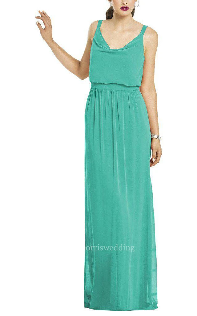 Strapped Cowl Neck Long Chiffon Dress