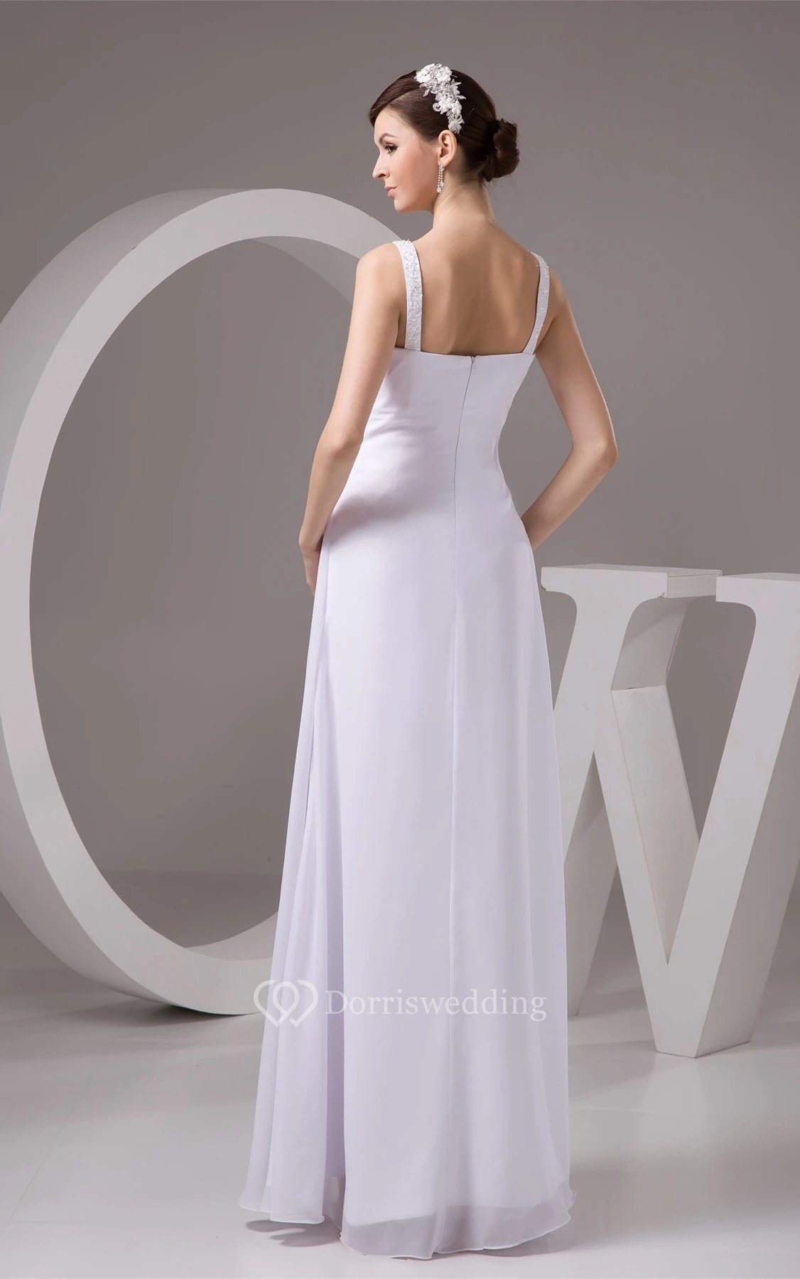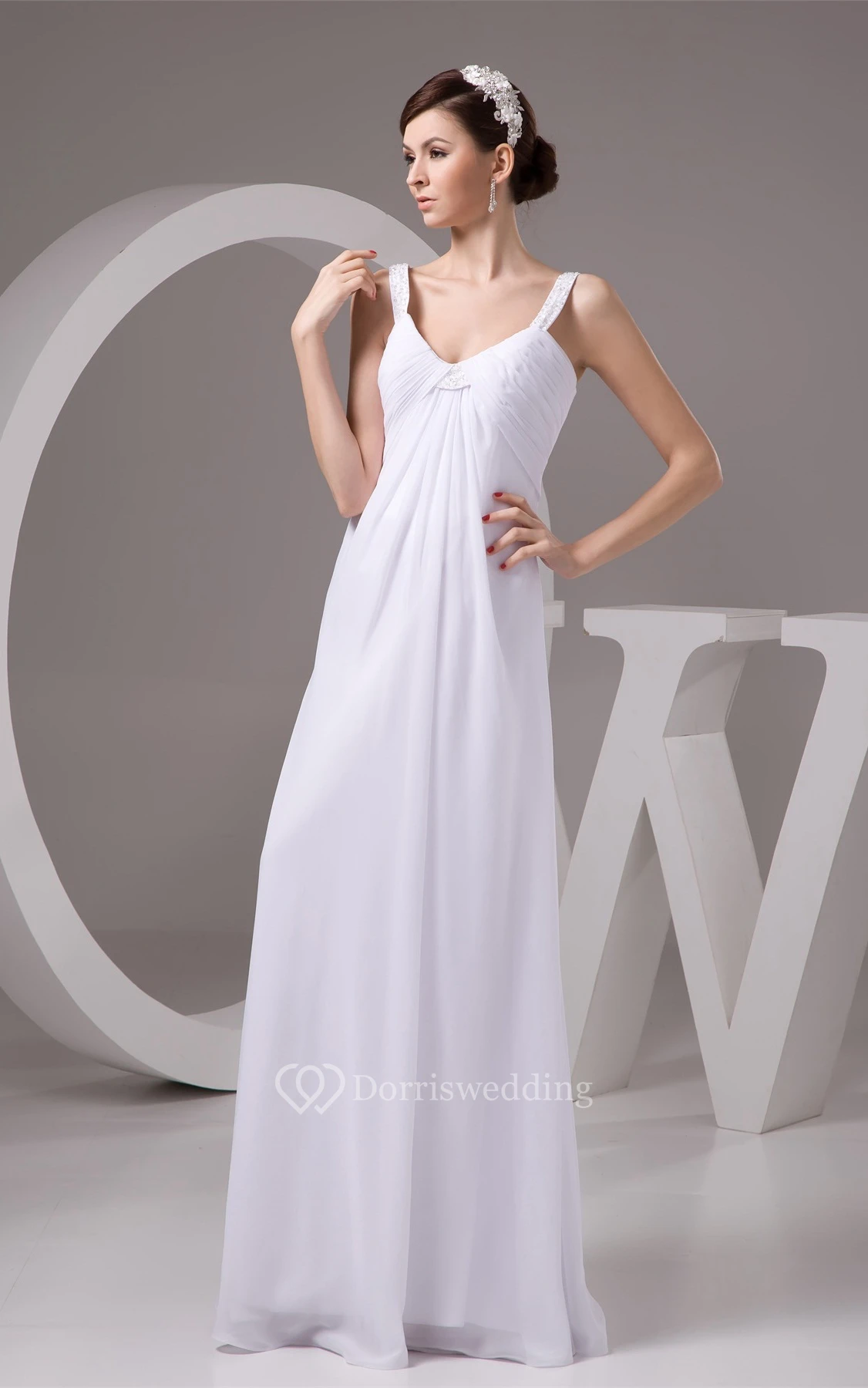 Strapped Empire Floor-Length Chiffon Beading and Dress With Pleats