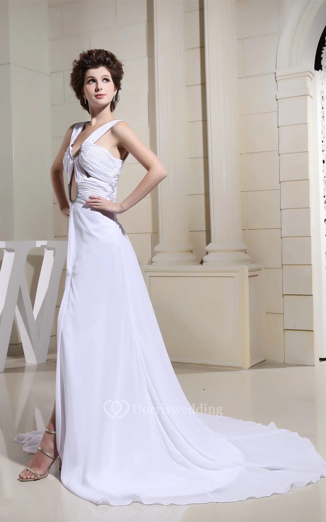 Strapped Front-Split Ruched Dress With Keyhole Design