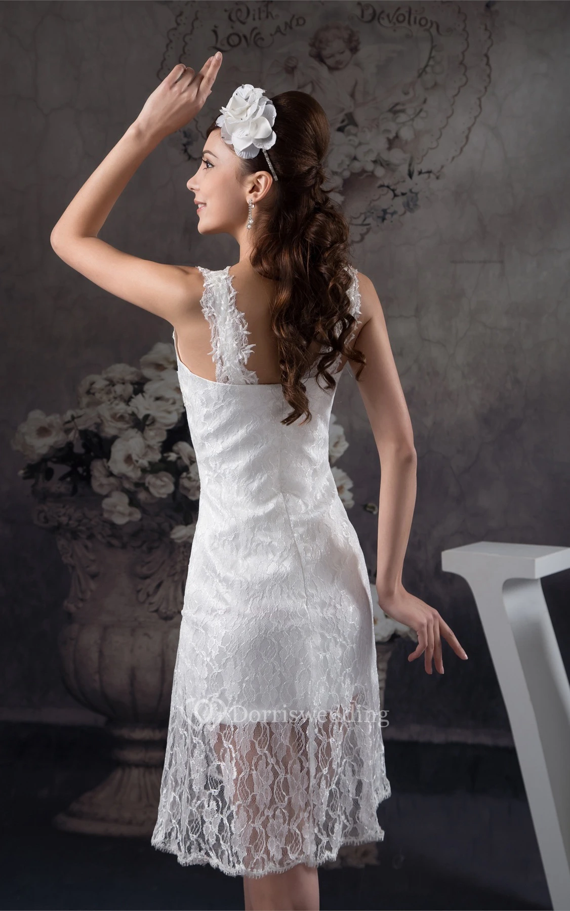 Strapped Midi Lace Dress With Zipper Back