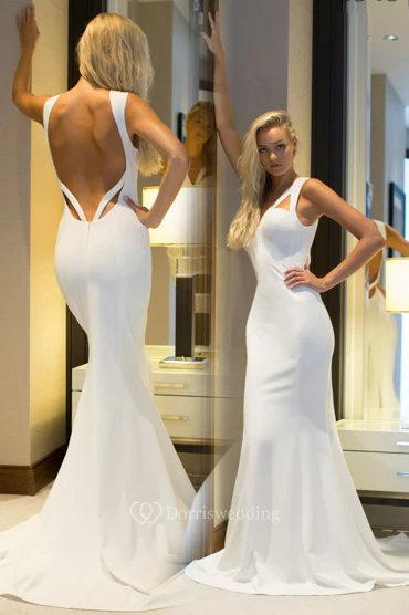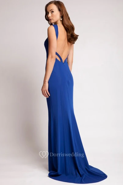 Strapped Sleeveless Jersey Prom Dress With Brush Train