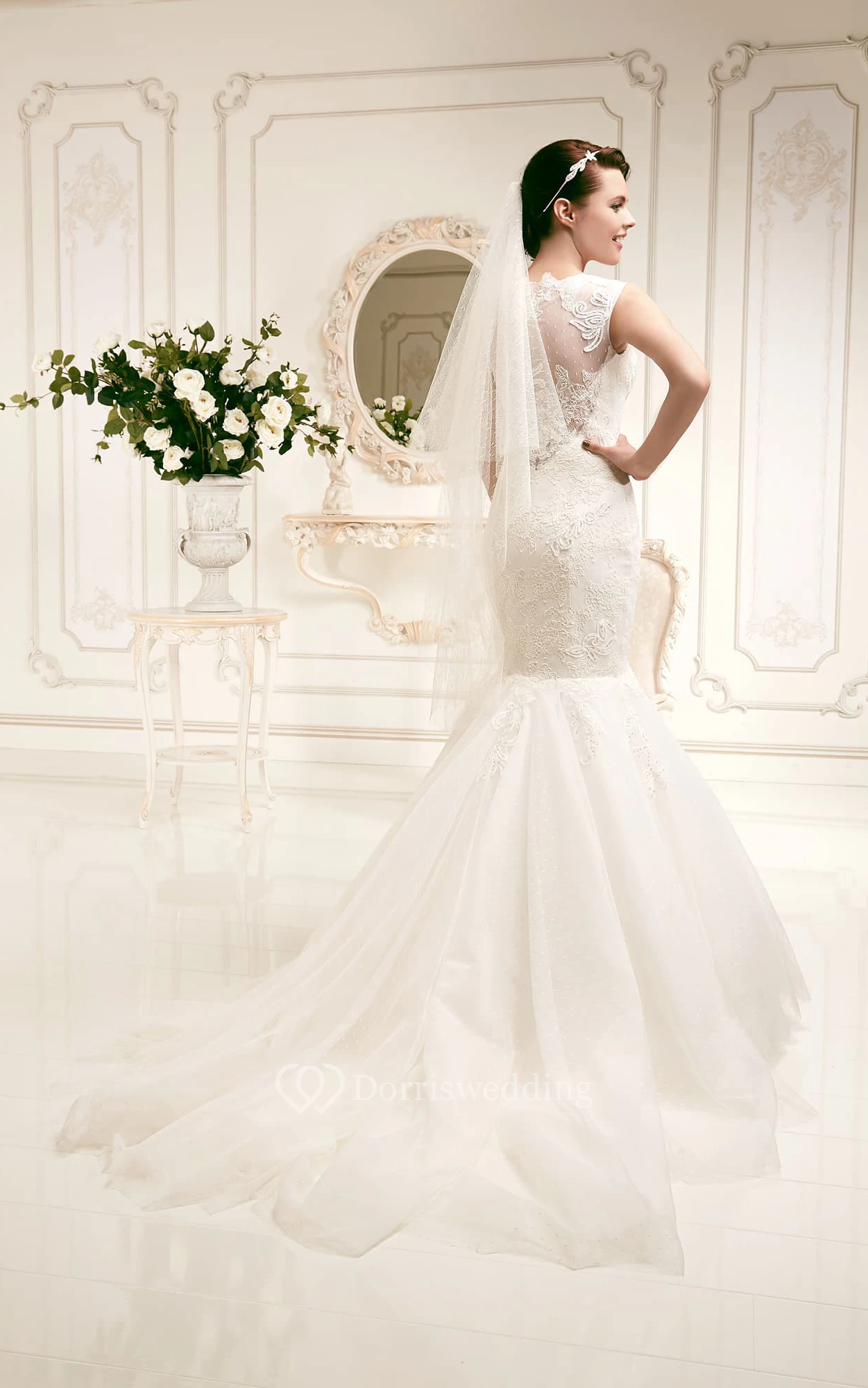Strapped Sweetheart Illusion Back Appliques Mermaid Dress